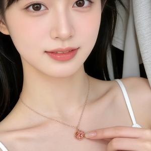 珐琅旋转桃花心上吊坠(附赠K金项链...