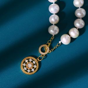近圆天然深水珍珠豪镶满钻白玫瑰毛衣...