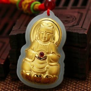 足金镶嵌和田玉十二生肖吊坠挂件(附...