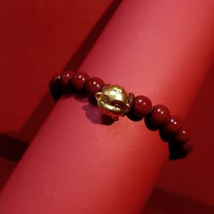 K金招财貔貅转运珠红玉髓手串