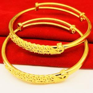 K金微雕CNC千禧龙凤推拉手镯6mm