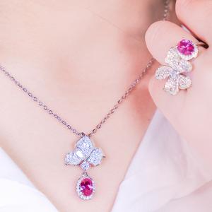 K铂金CNC彩宝钻石珊瑚花之恋钻戒