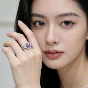 艺金见宝紫气星芒紫蓝宝钻戒
