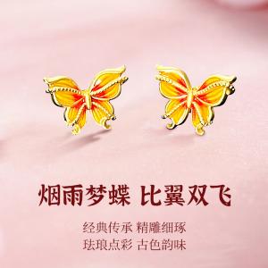 宫廷珐琅比翼双飞K金耳钉(对)