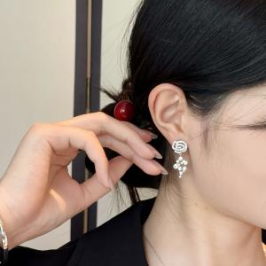 幸运花朵四叶草闪钻耳钉(对)