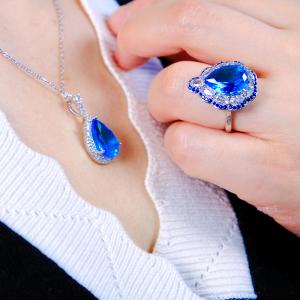 K铂金CNC彩宝钻石蓝色妖姬钻戒