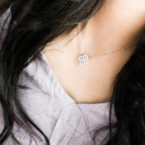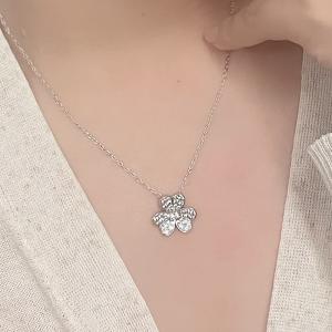 K铂金三叶草满钻项链