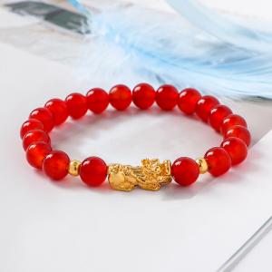 K金招财貔貅转运珠红玉髓手串