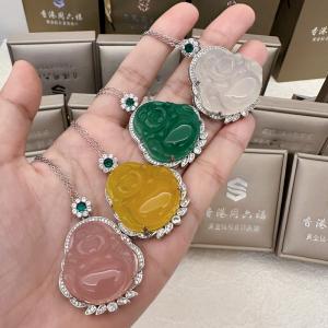 巴西高冰玉髓豪镶满钻弥勒笑佛吊坠