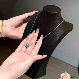 K铂金项链A级冰绿非洲翡翠转运珠吊坠...