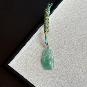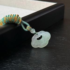 A级冰绿非洲翡翠祥云平安锁吊坠手编...