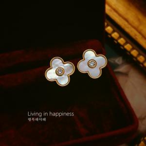 18K镶钻南非真钻圆白贝四叶草
