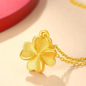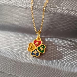 K金心心相印幸运四叶草吊坠(附赠K金...