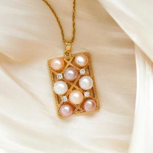 天然彩虹珍珠K金平安无事牌吊坠(赠K...