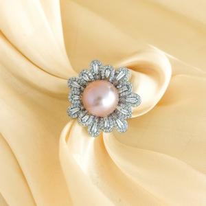 爱迪生极光紫珍珠璀璨花朵耳钉(对)