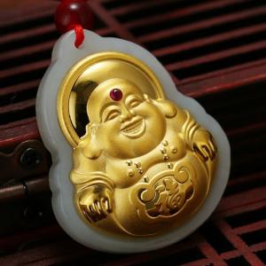 古法银镶嵌和田玉-笑脸佛