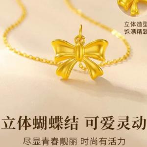 5D足金吊坠蝴蝶结爱心(附赠K金项链)