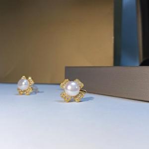 天然珍珠镶白母贝镂空山茶花耳钉(对...