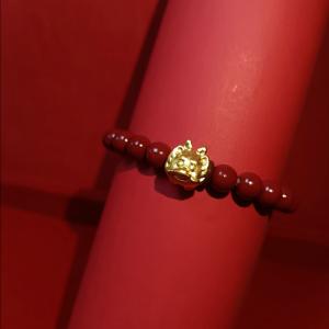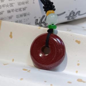 天然原矿朱砂微雕麒麟平安扣吊坠