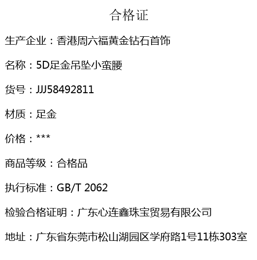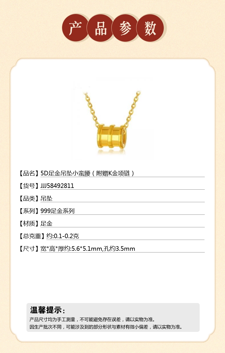 【品名】5D足金吊坠小蛮腰(附赠K金项链)
