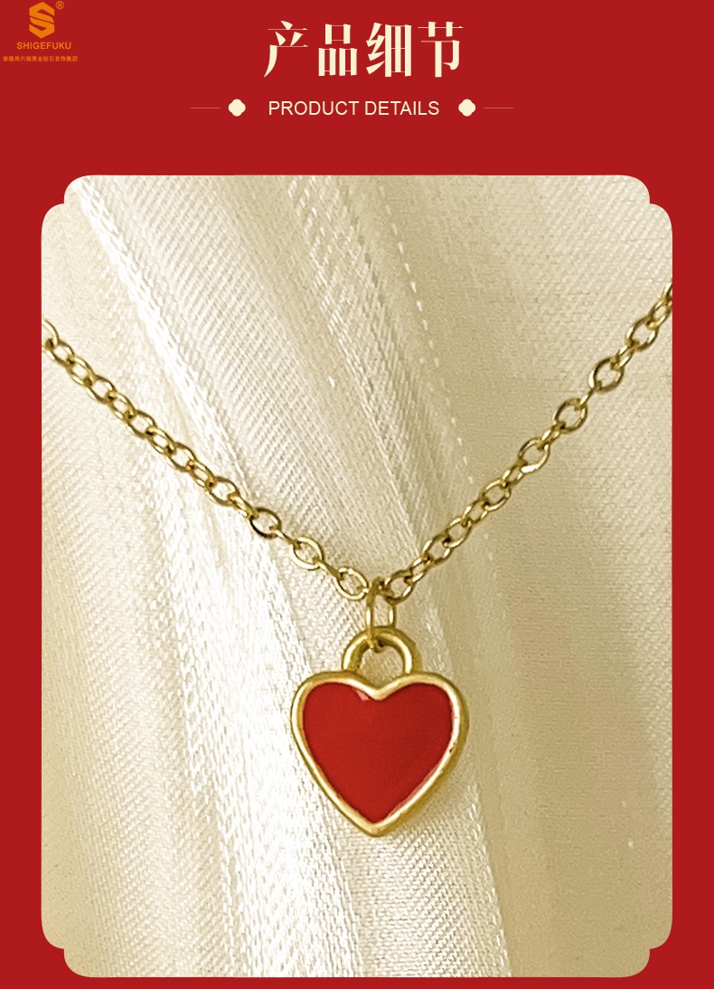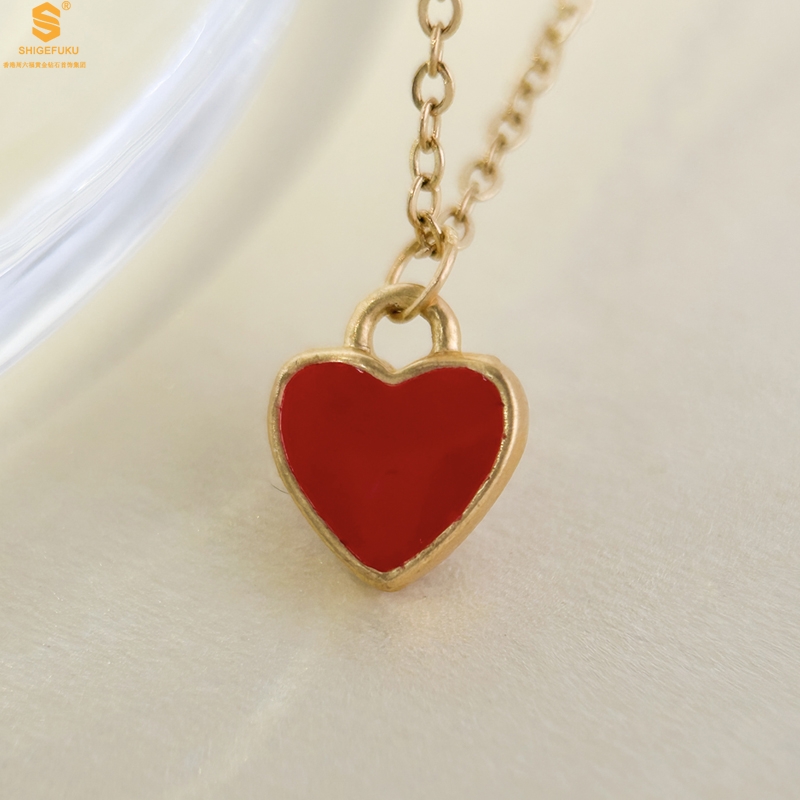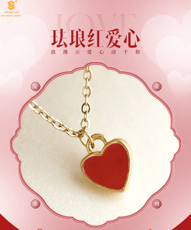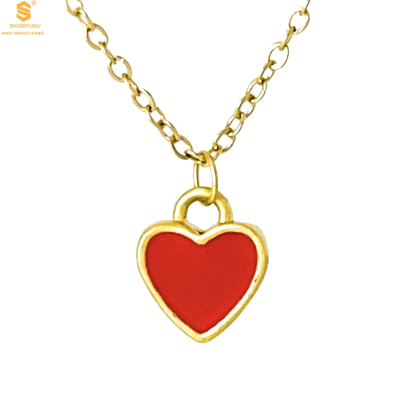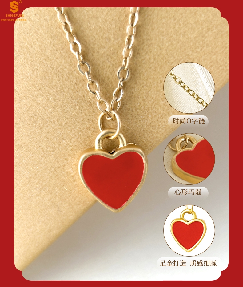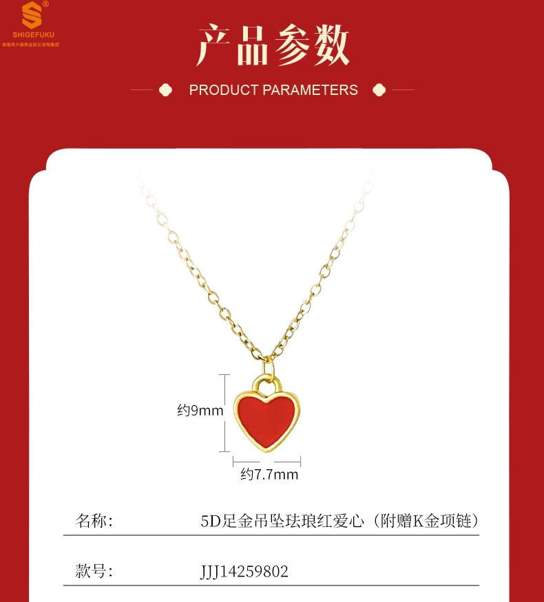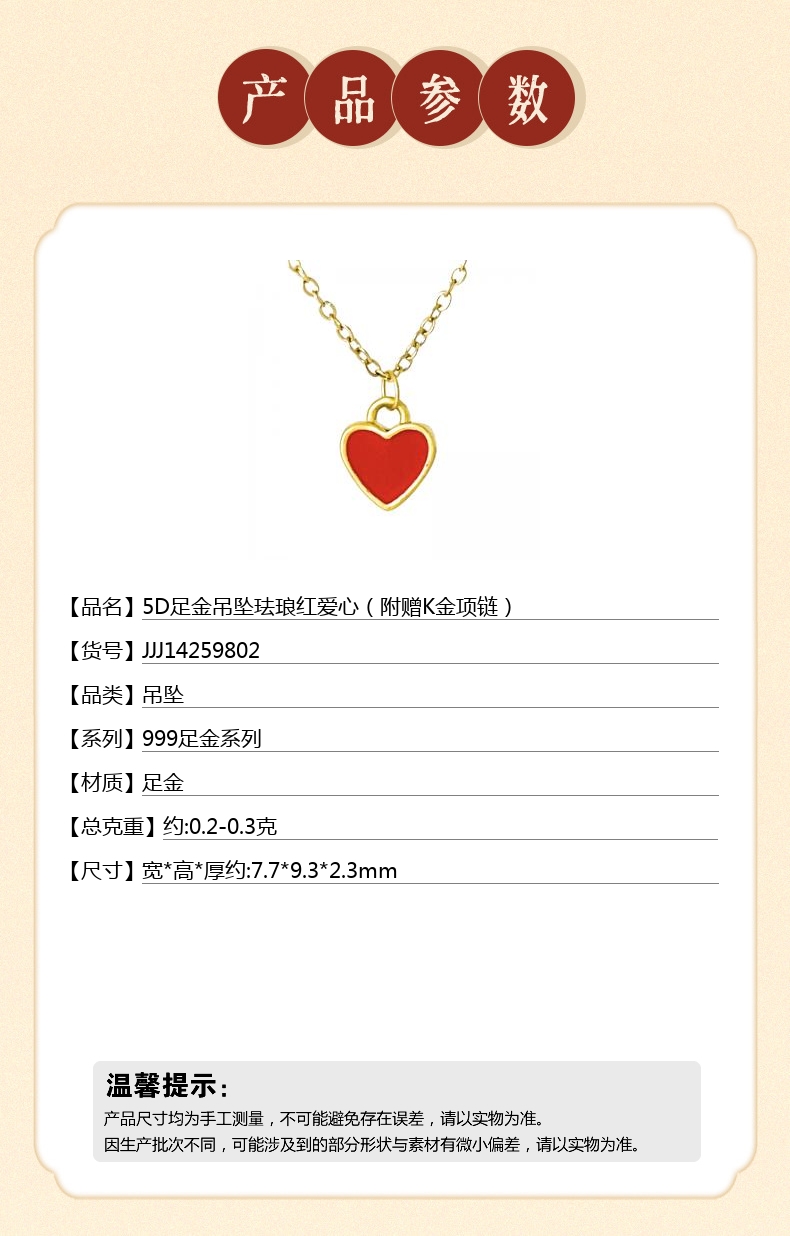 【品名】5D足金吊坠珐琅红爱心(附赠K金项链)