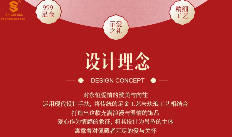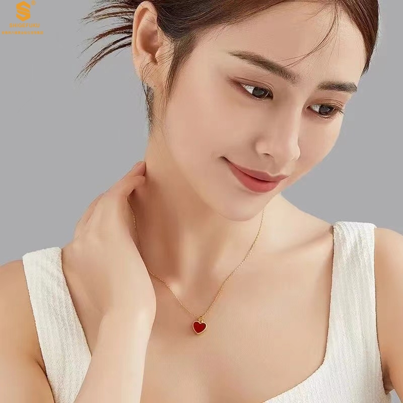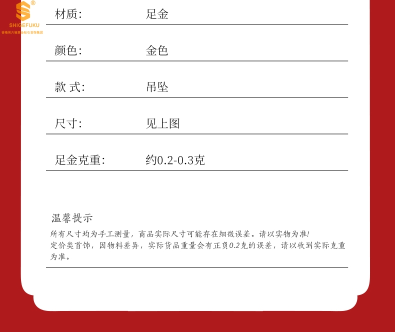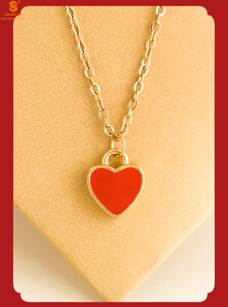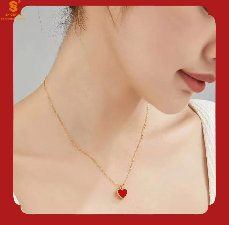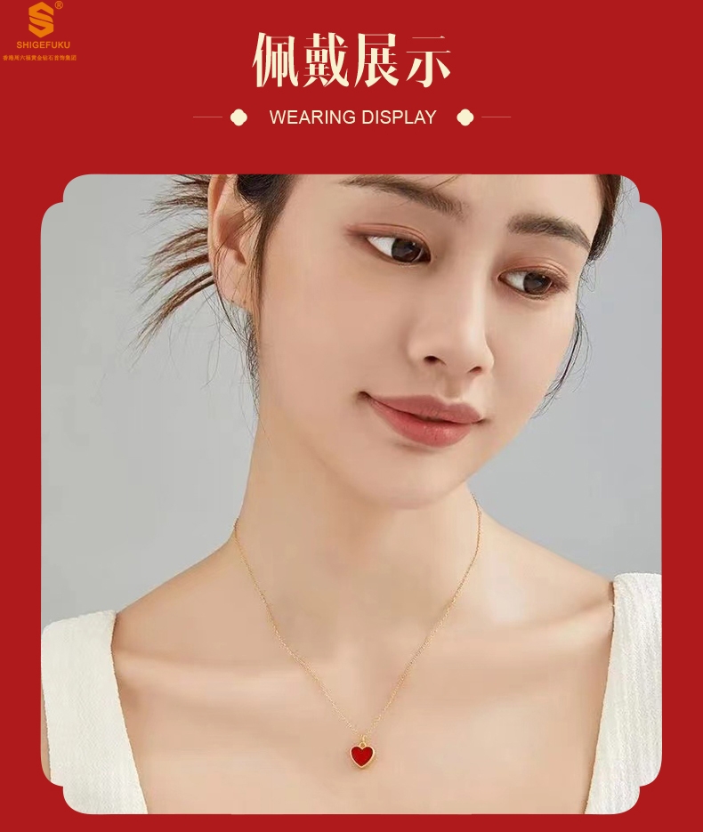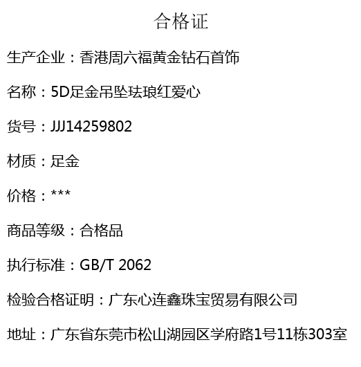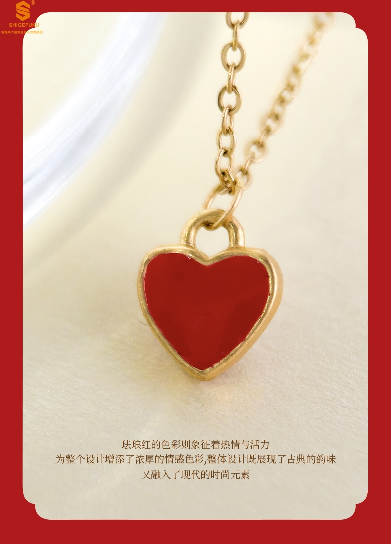 【品名】5D足金吊坠珐琅红爱心(附赠K金项链)