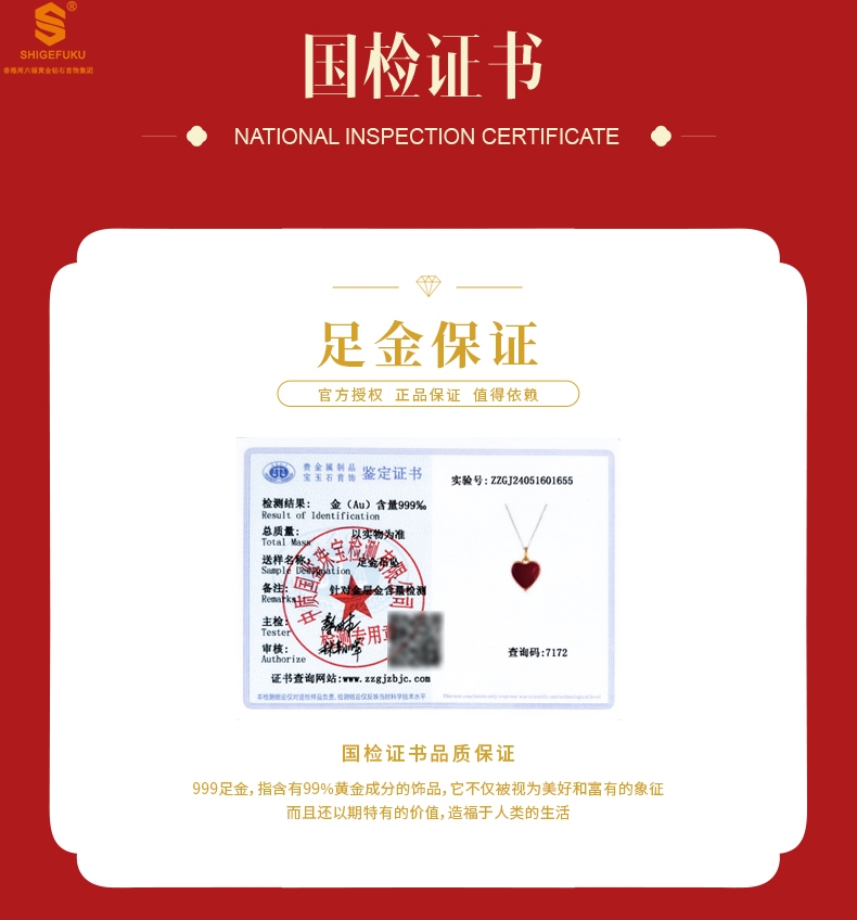 【套装包含】首饰+礼品盒+礼品袋+国检证书+质保单+价签