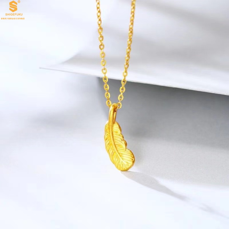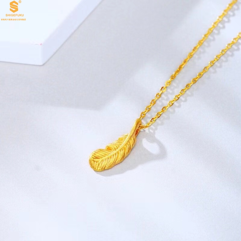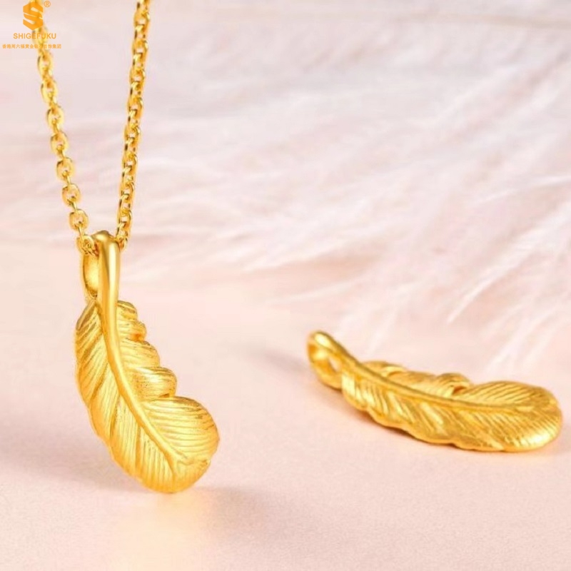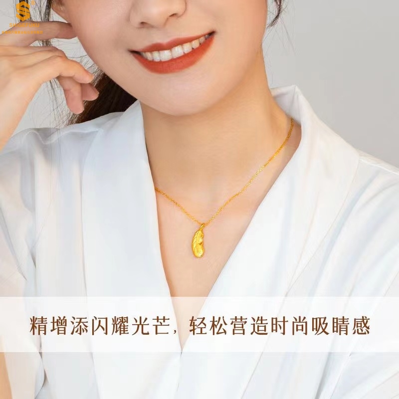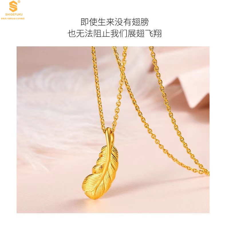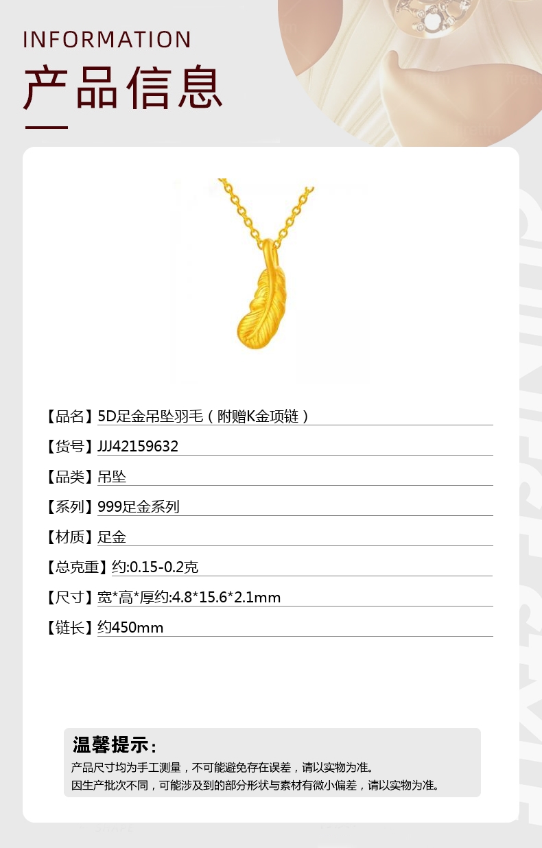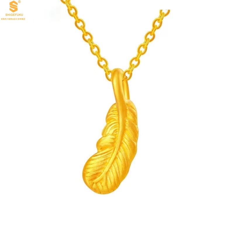 【品名】5D足金吊坠羽毛(附赠K金项链)