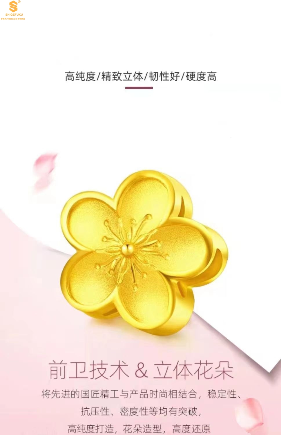 【品名】5D足金吊坠桃花(附赠K金项链)