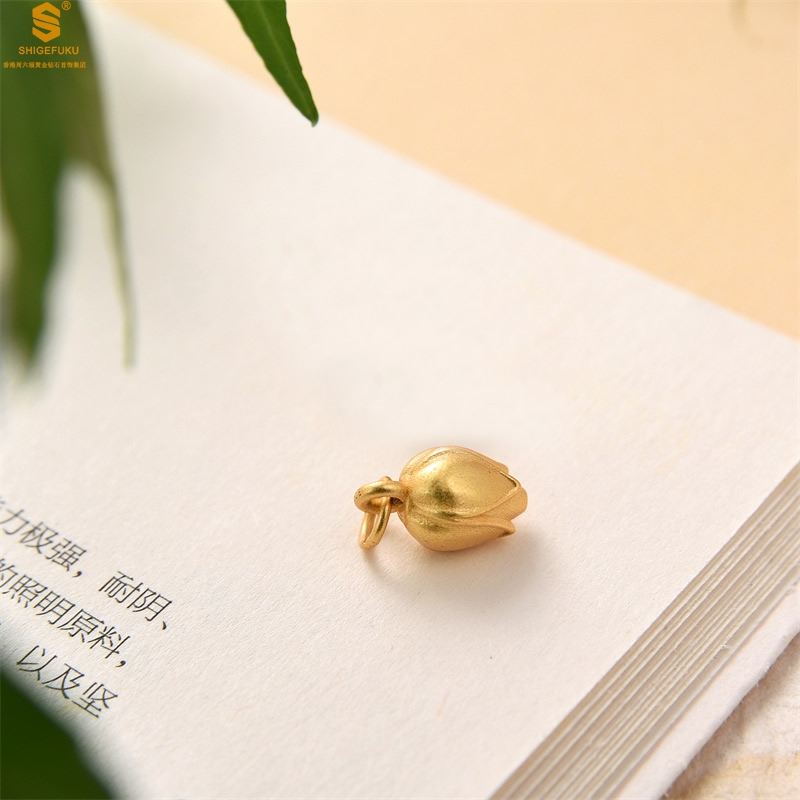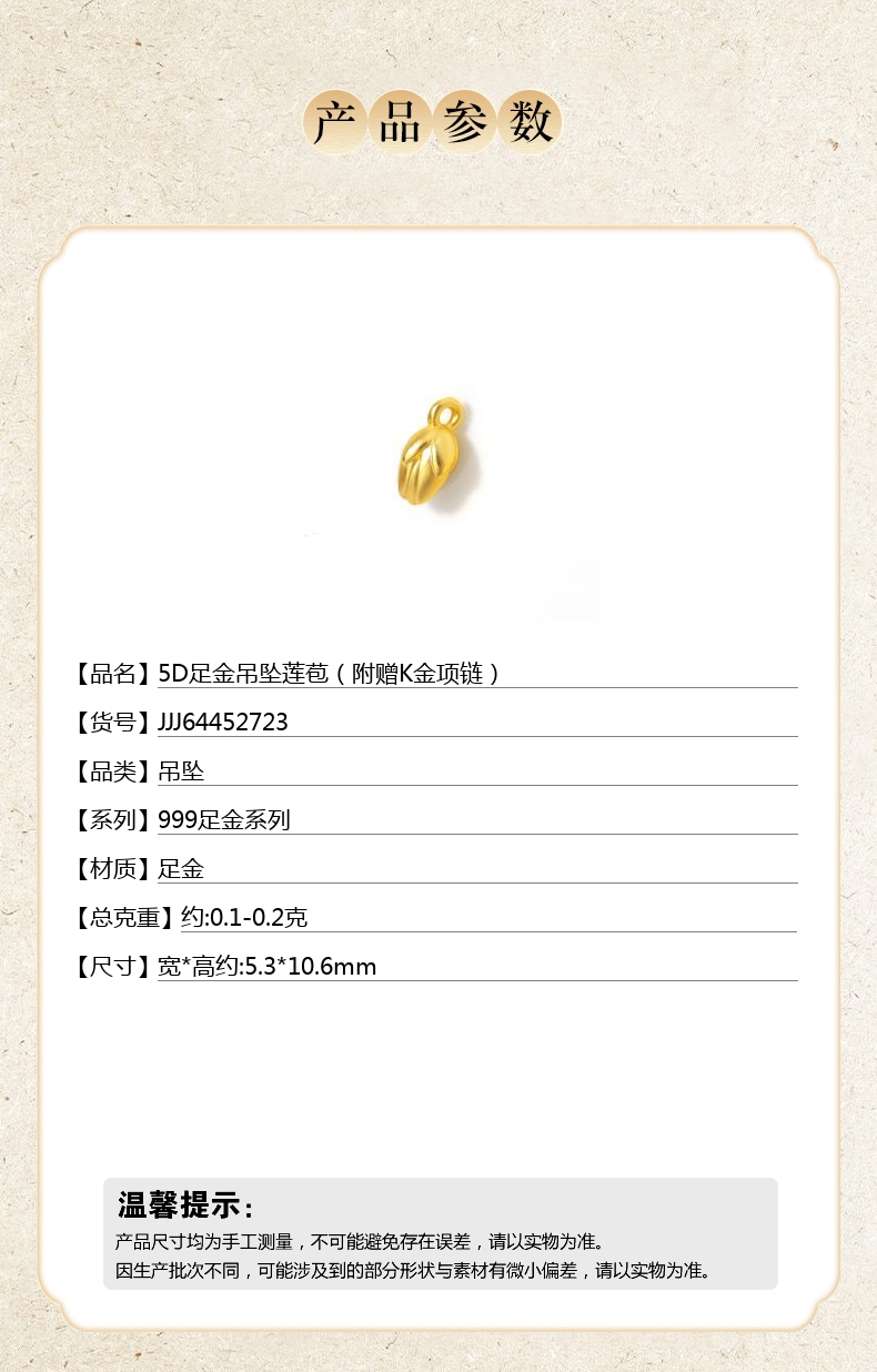 【品名】5D足金吊坠莲苞(附赠K金项链)