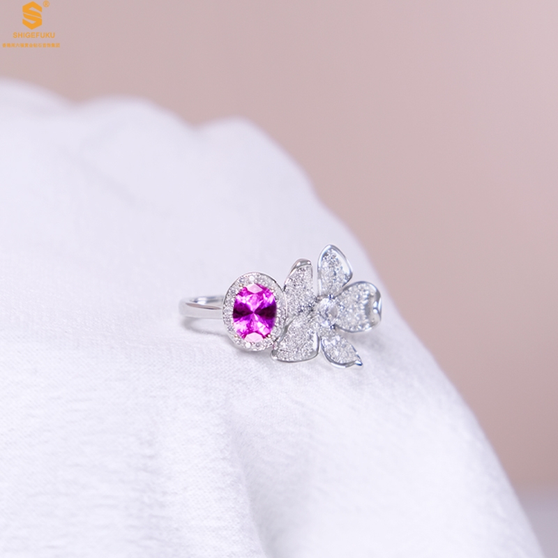 【品名】K铂金CNC彩宝钻石梦幻之境钻戒