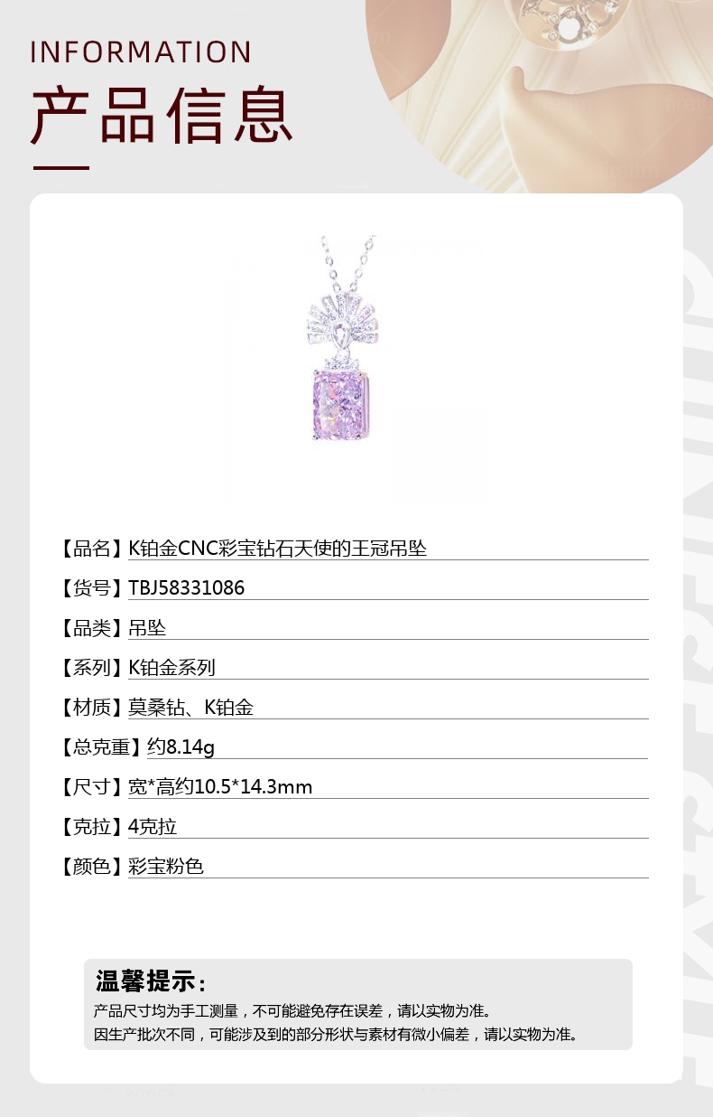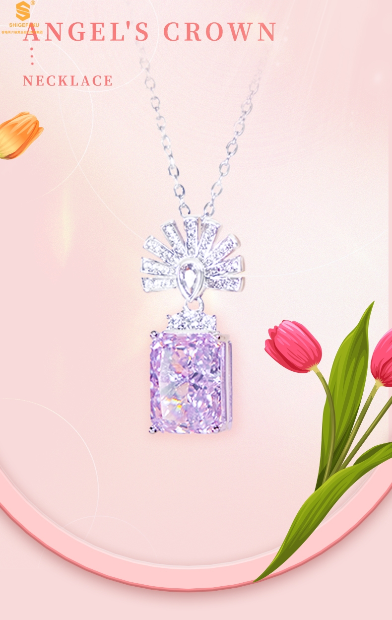 【品名】K铂金CNC彩宝钻石天使的王冠吊坠