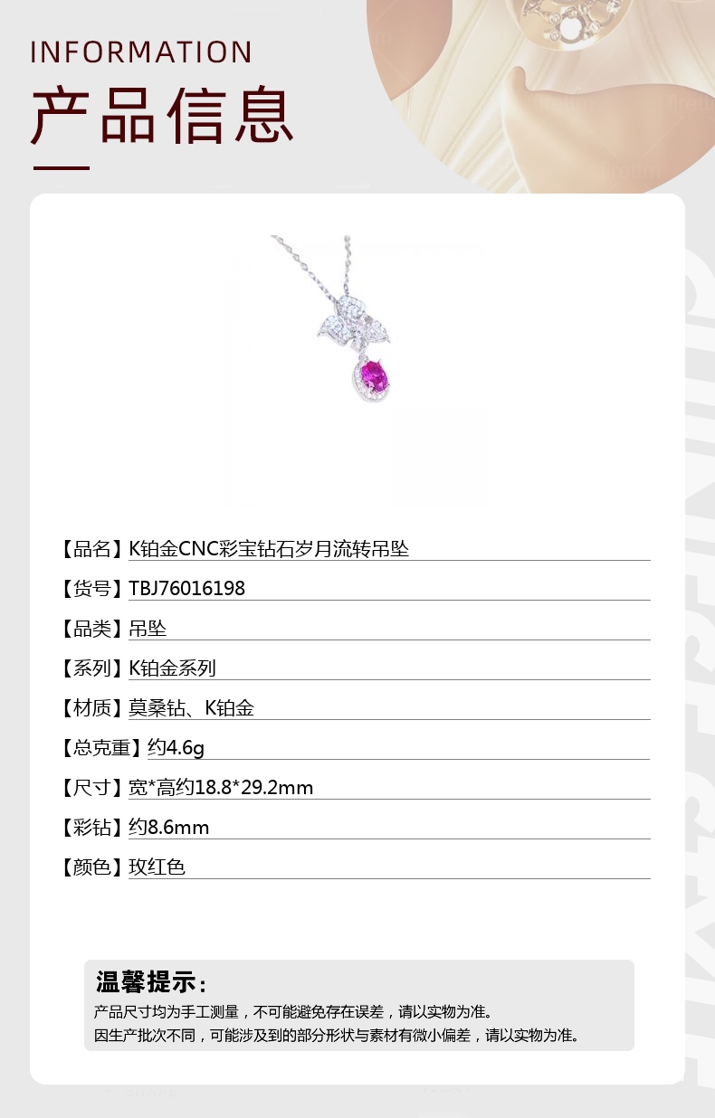 【品名】K铂金CNC彩宝钻石岁月流转吊坠