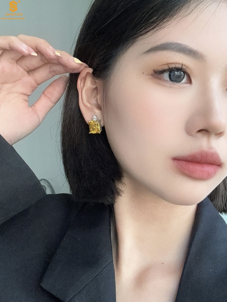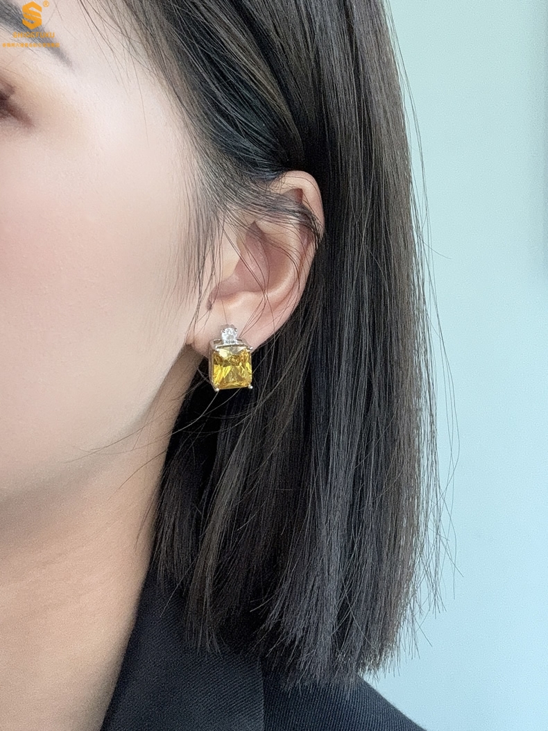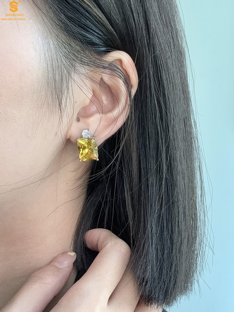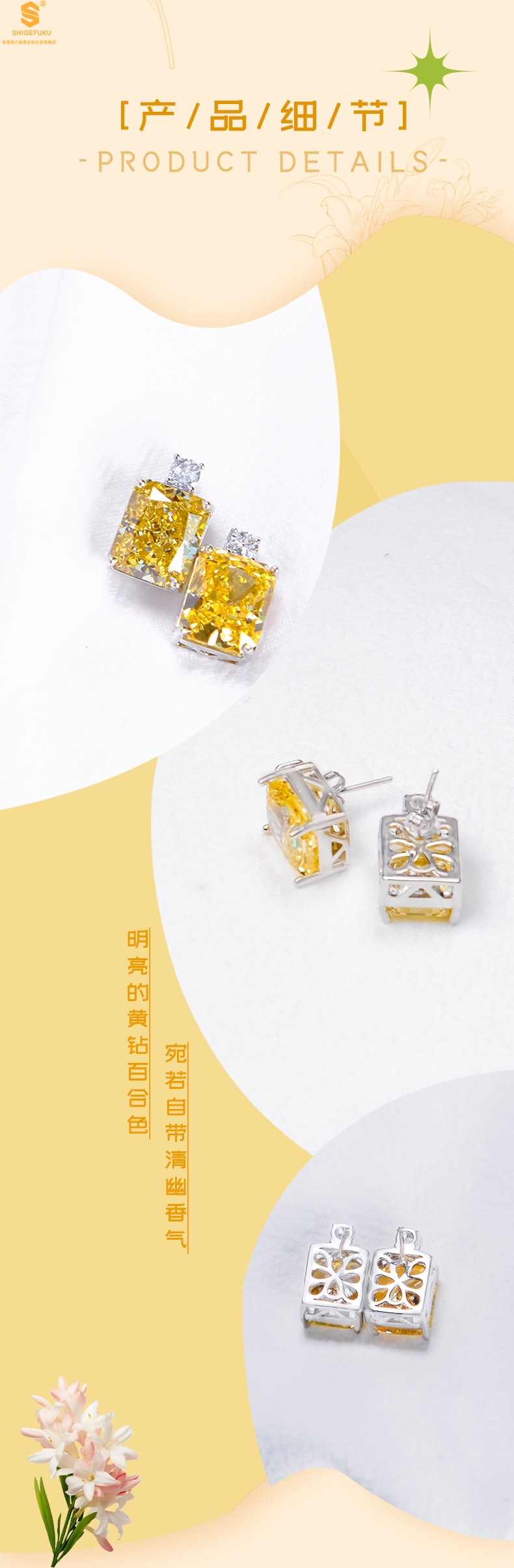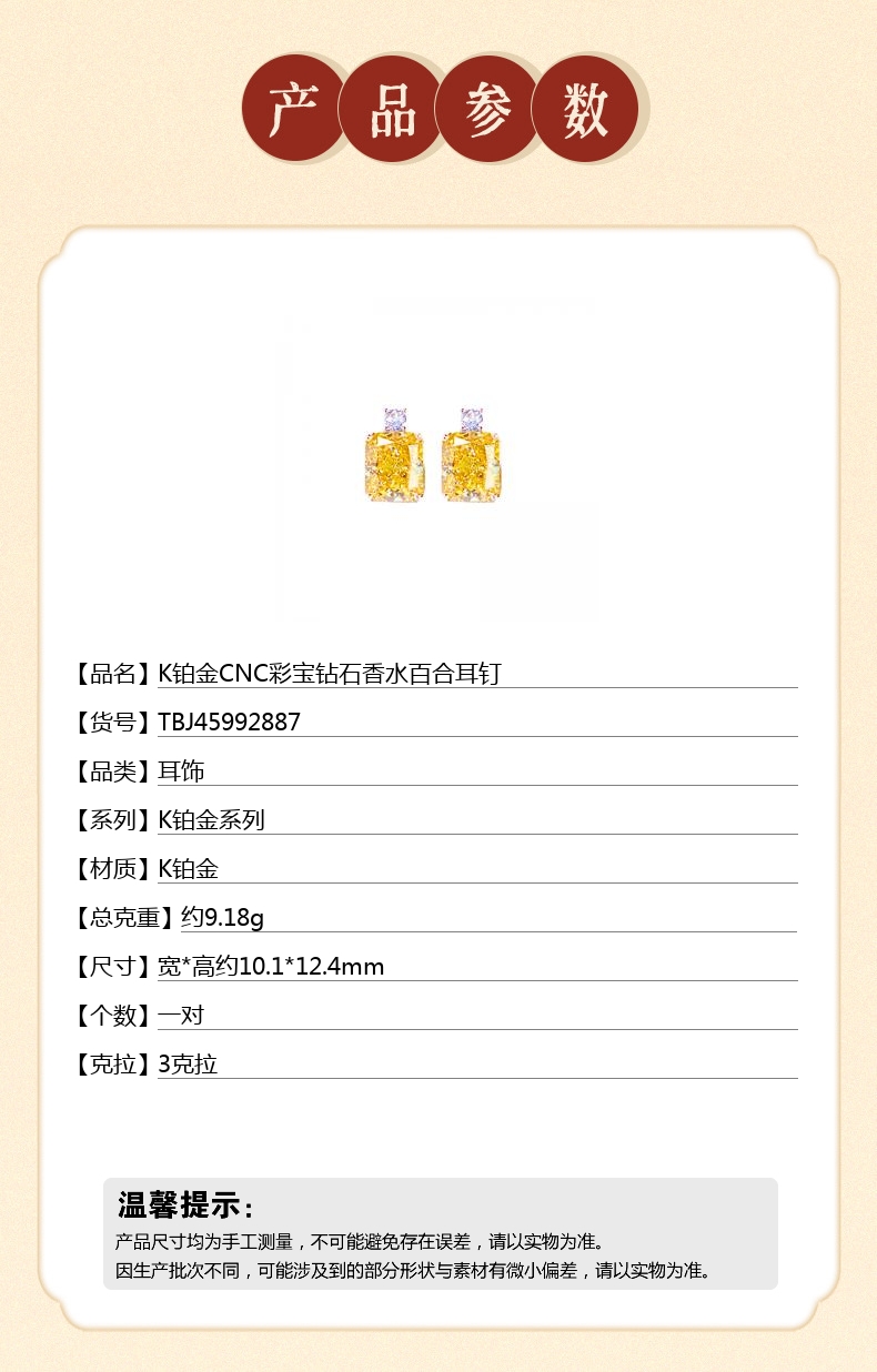 【品名】K铂金CNC彩宝钻石香水百合耳钉