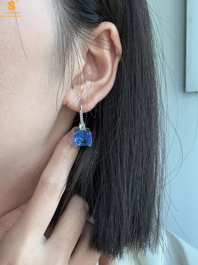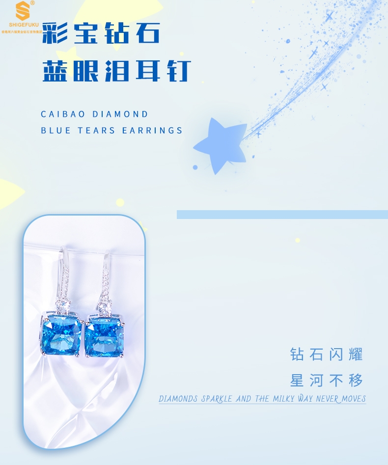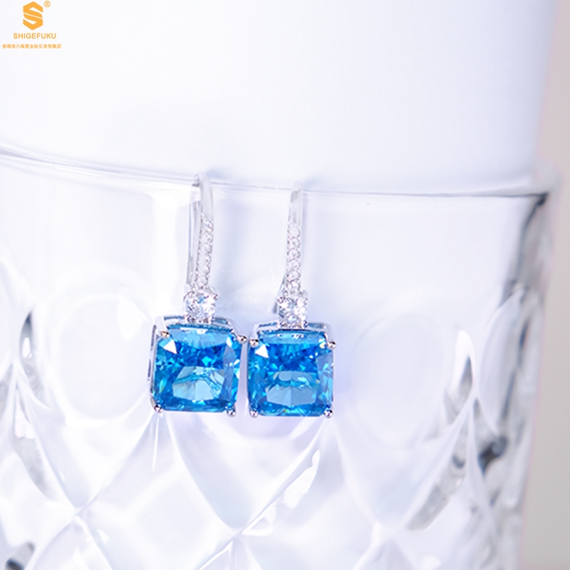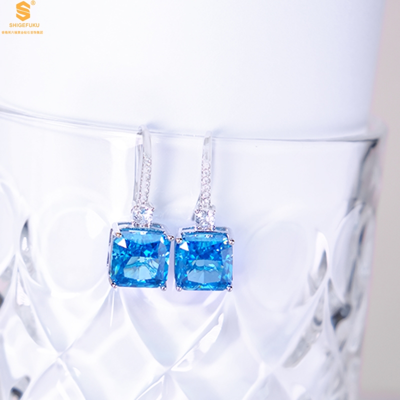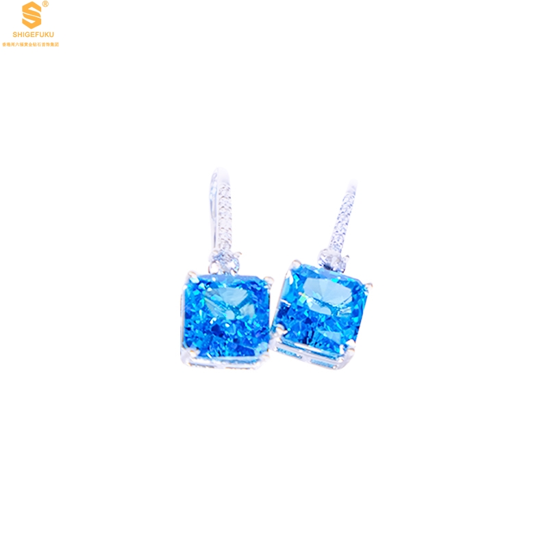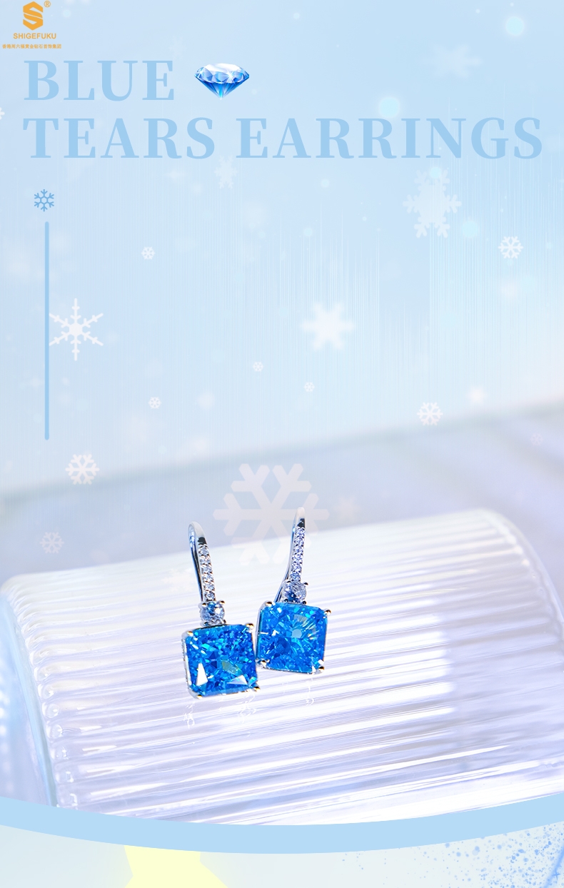 【品名】K铂金CNC彩宝钻石蓝眼泪耳钉