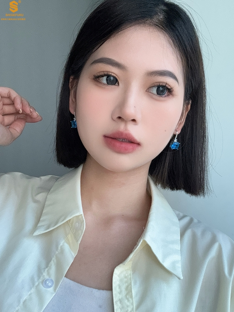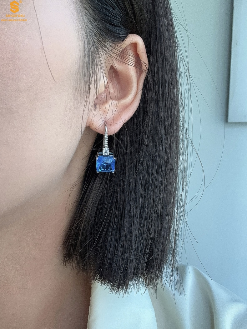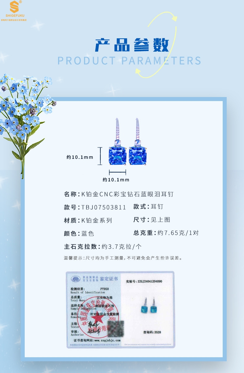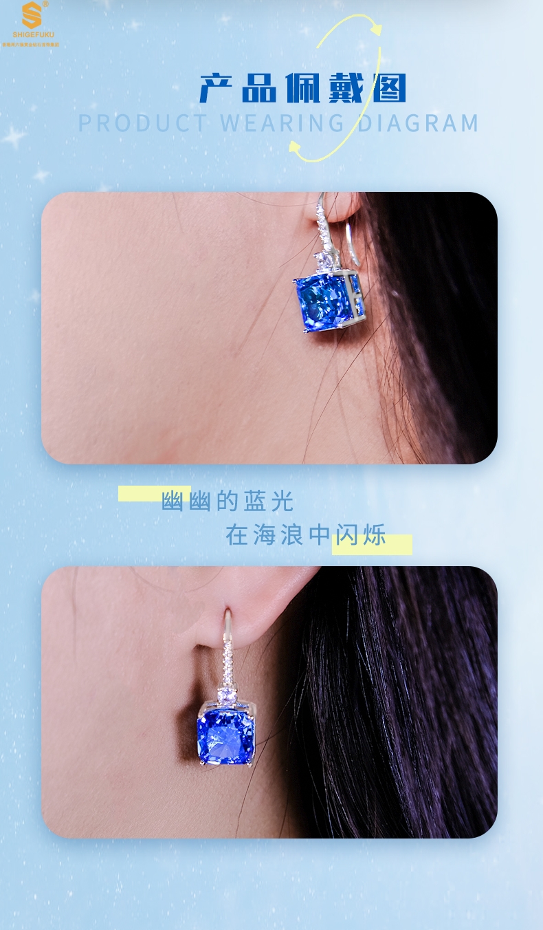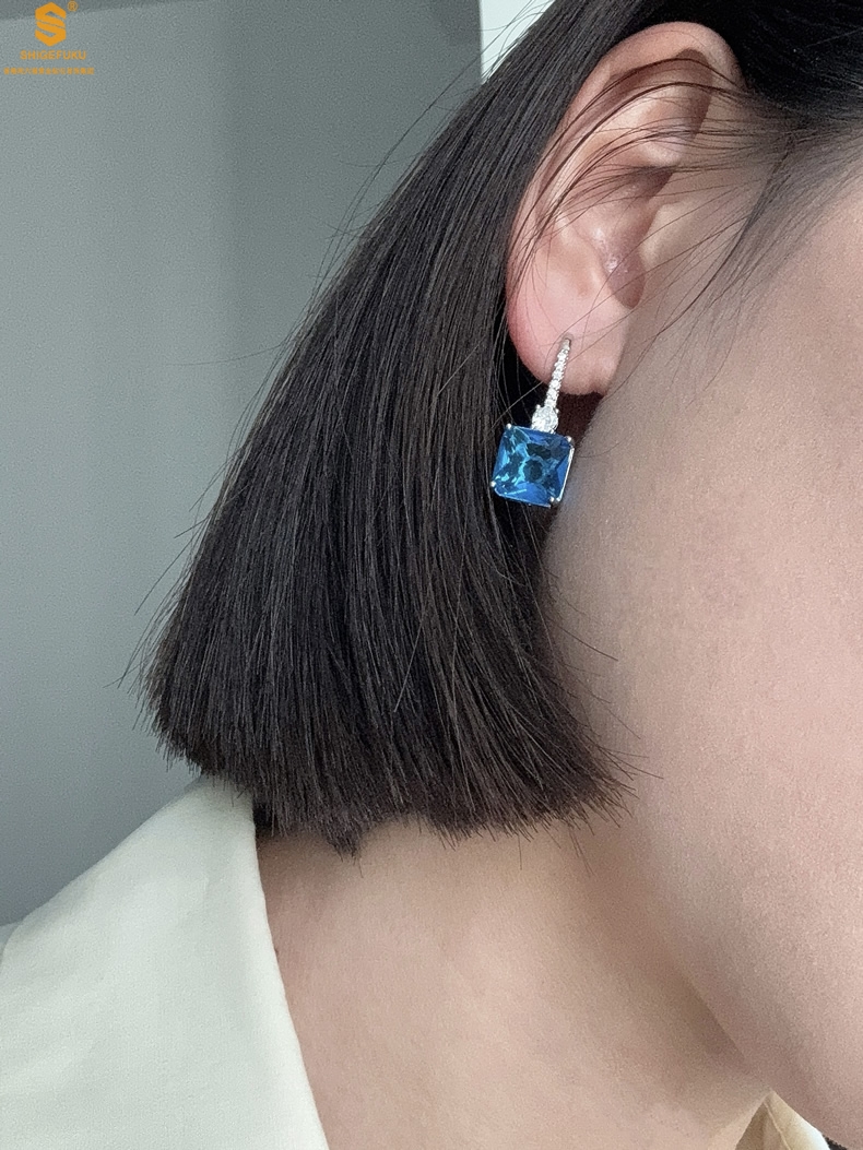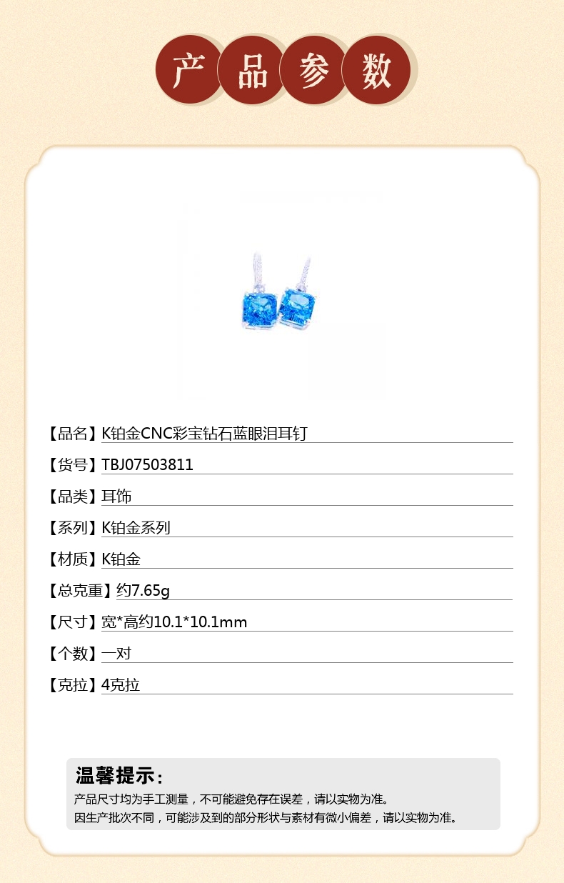 【品名】K铂金CNC彩宝钻石蓝眼泪耳钉