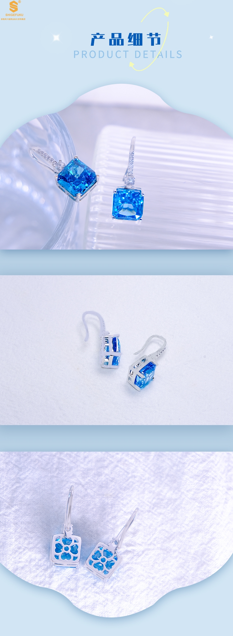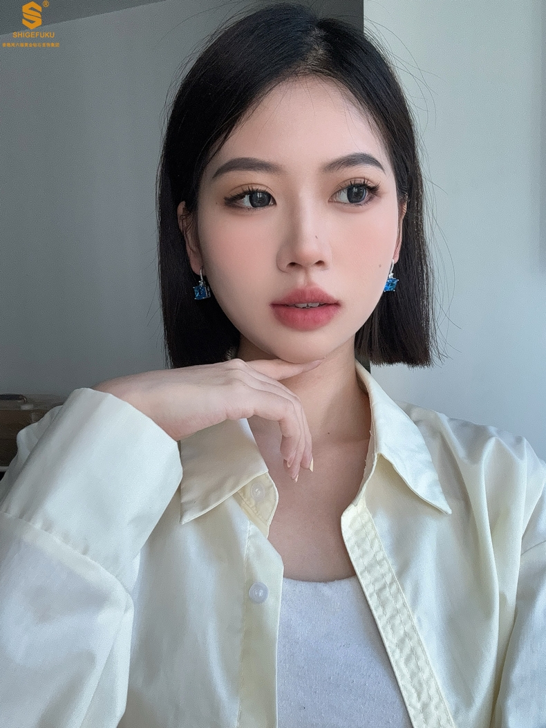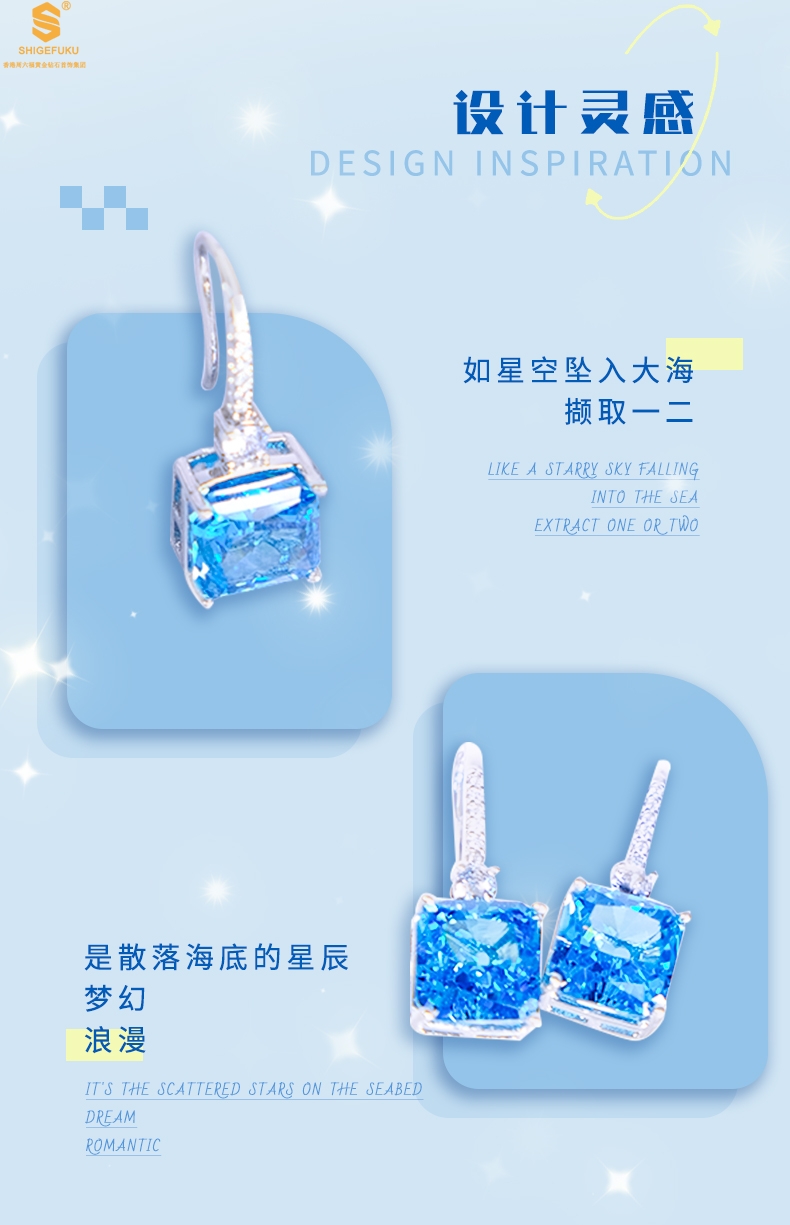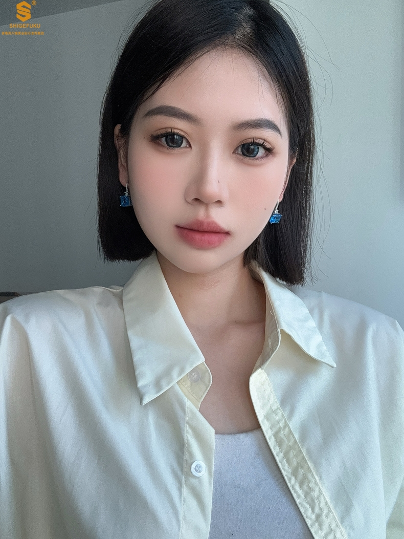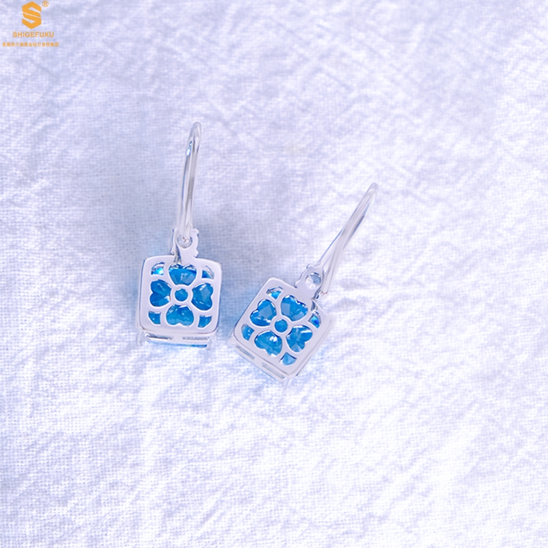 【品名】K铂金CNC彩宝钻石蓝眼泪耳钉
