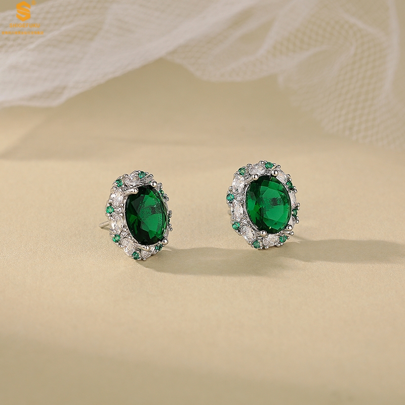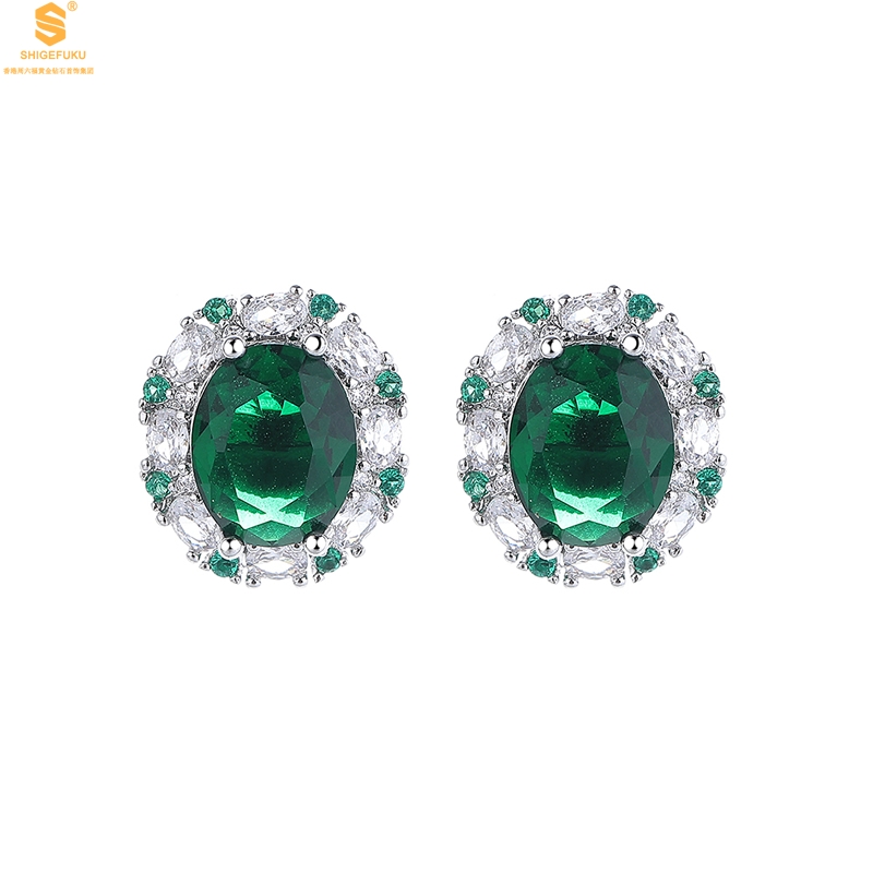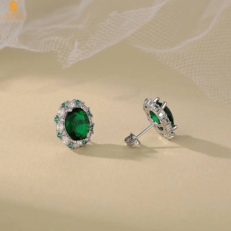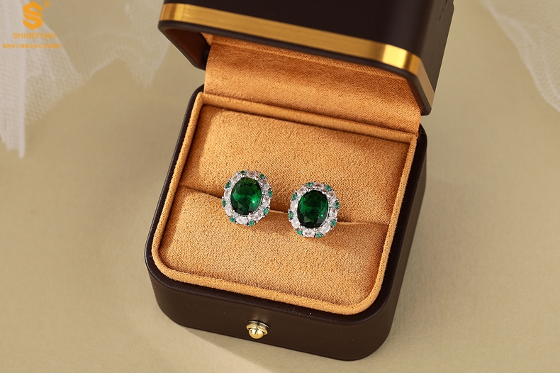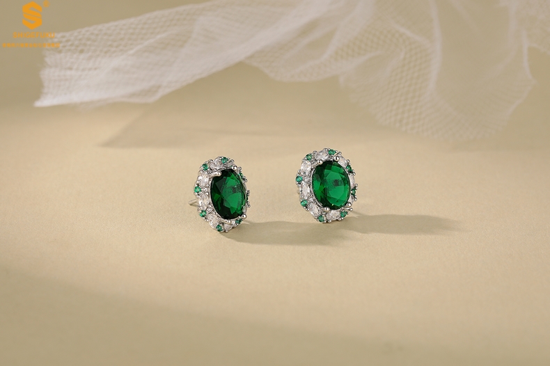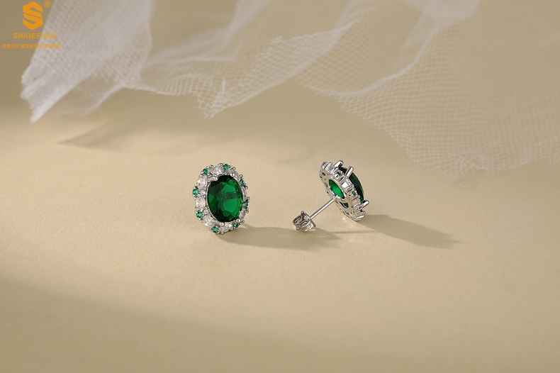 【品名】K铂金CNC彩宝钻石惊艳时光祖母绿耳钉