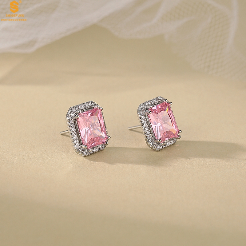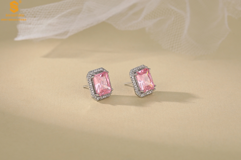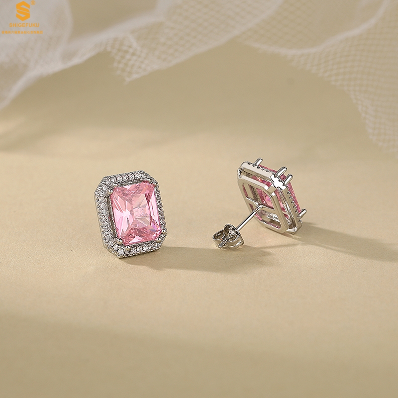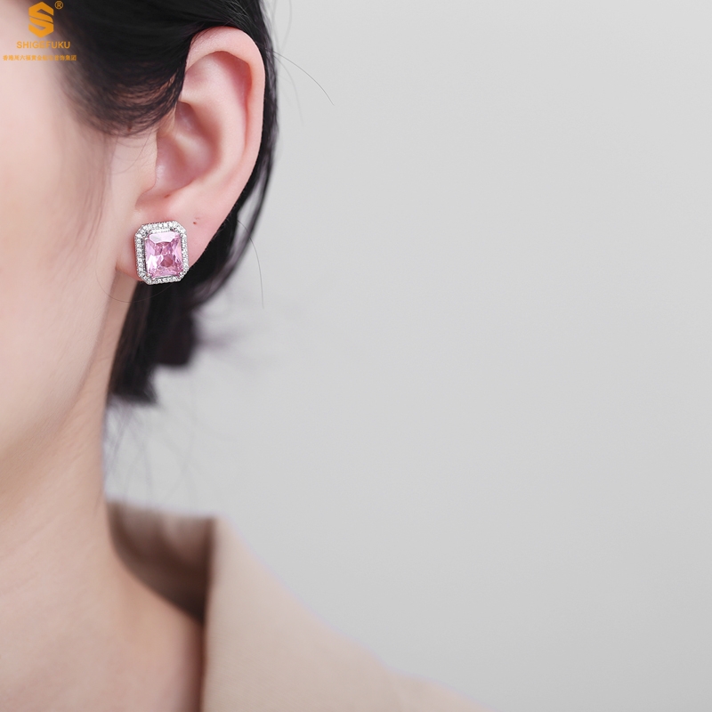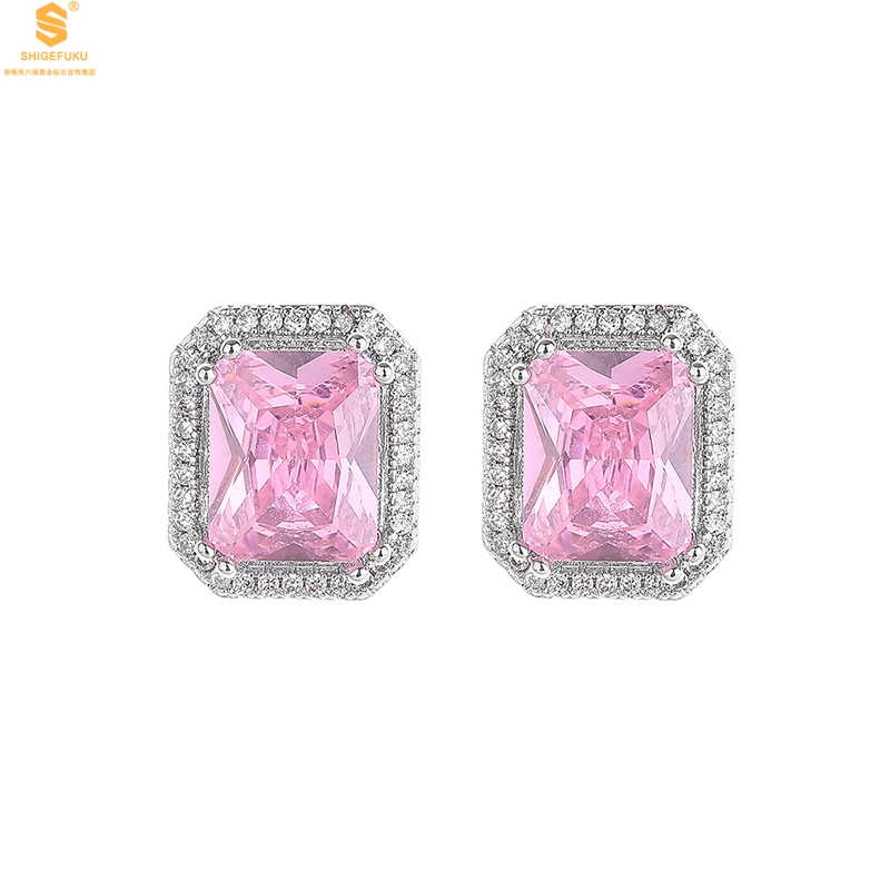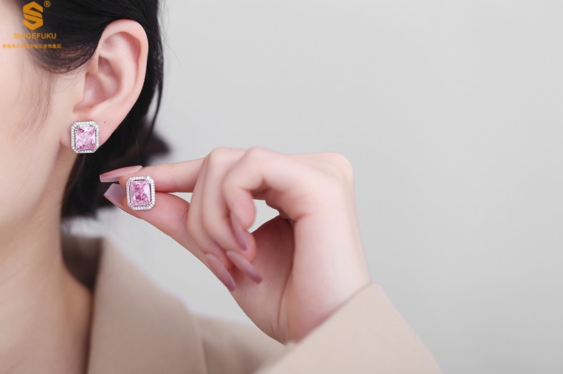 【品名】K铂金CNC彩宝钻石粉色浪漫耳钉