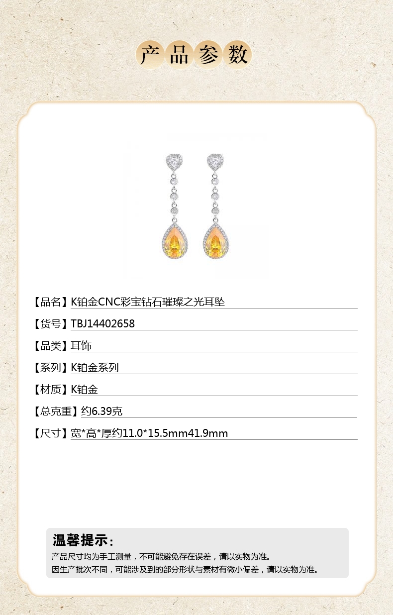 【品名】K铂金CNC彩宝钻石璀璨之光耳坠