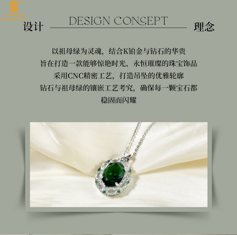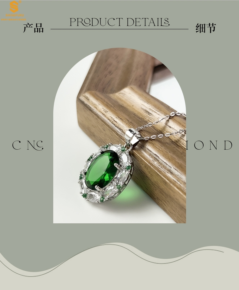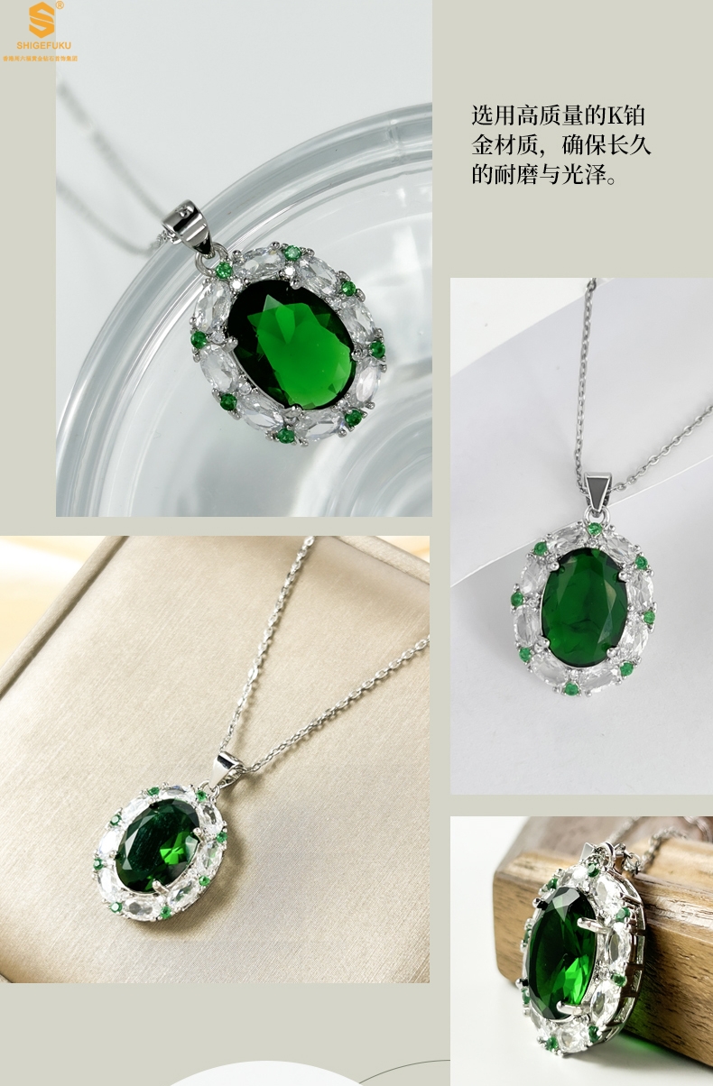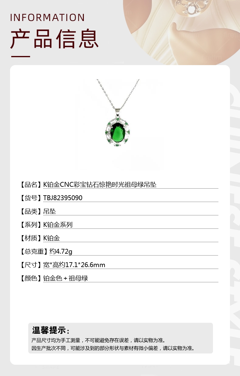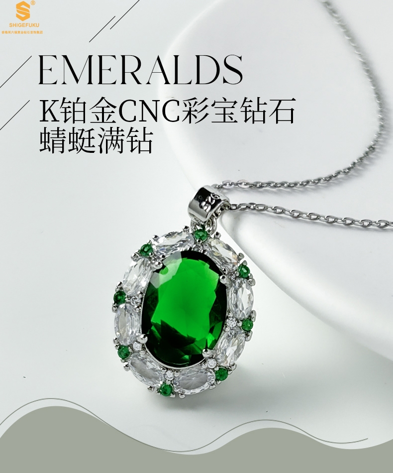 【品名】K铂金CNC彩宝钻石惊艳时光祖母绿吊坠