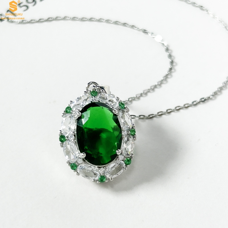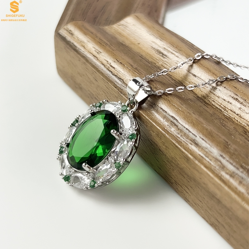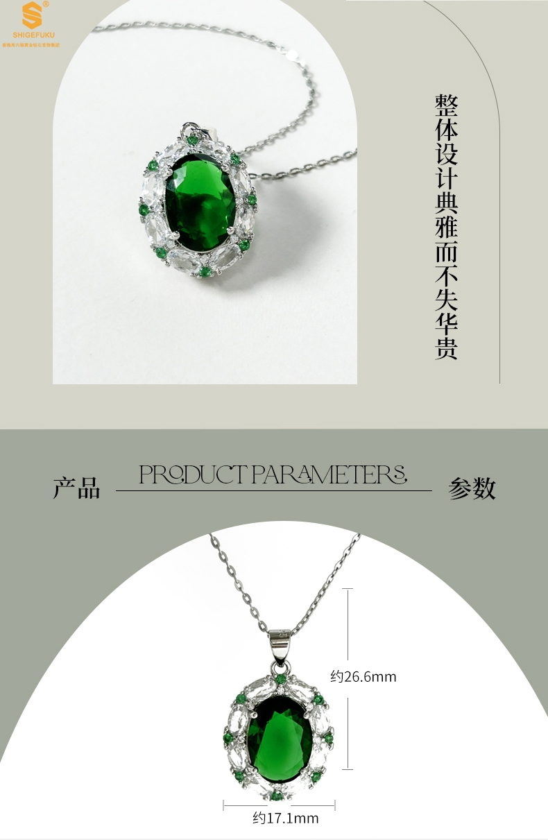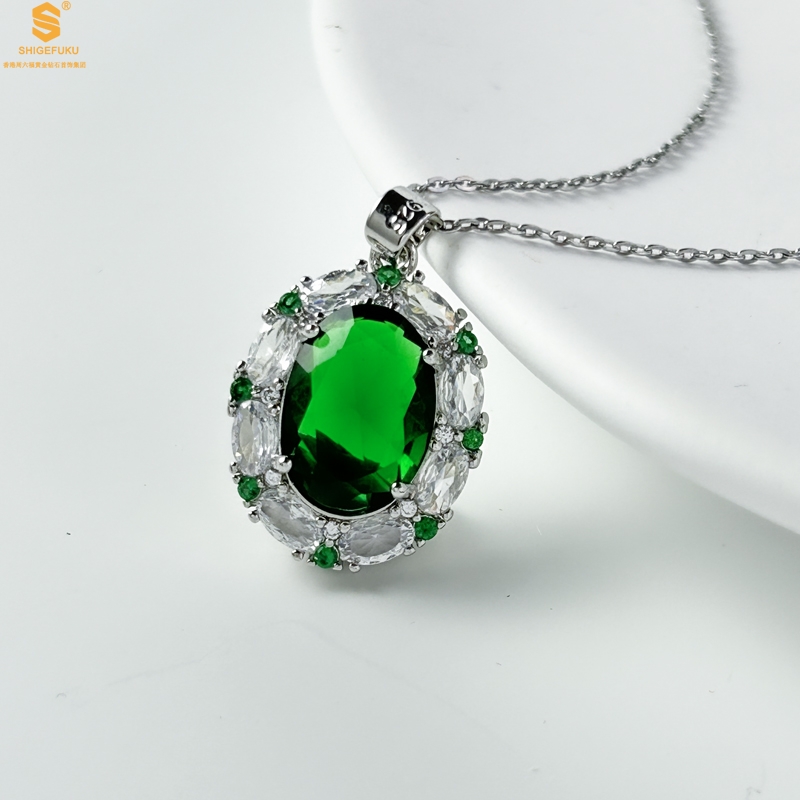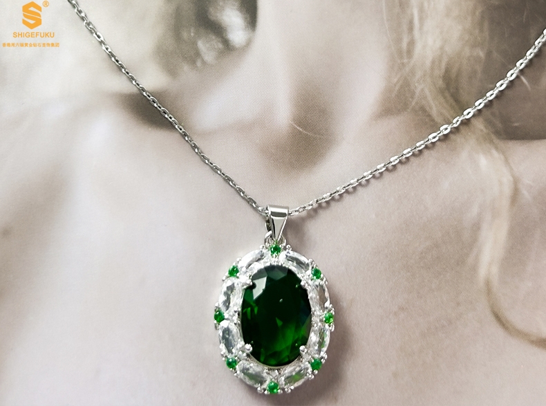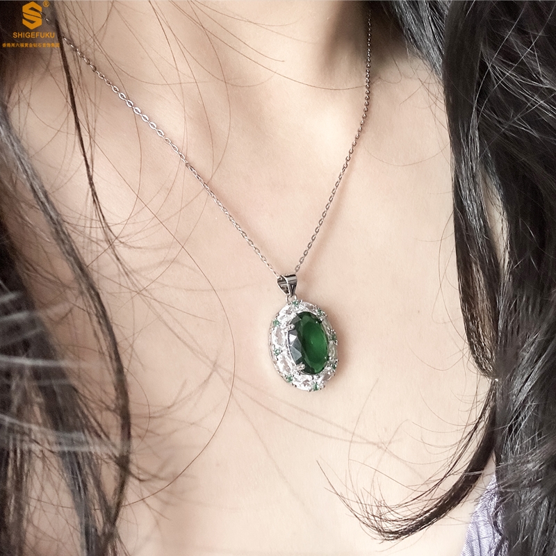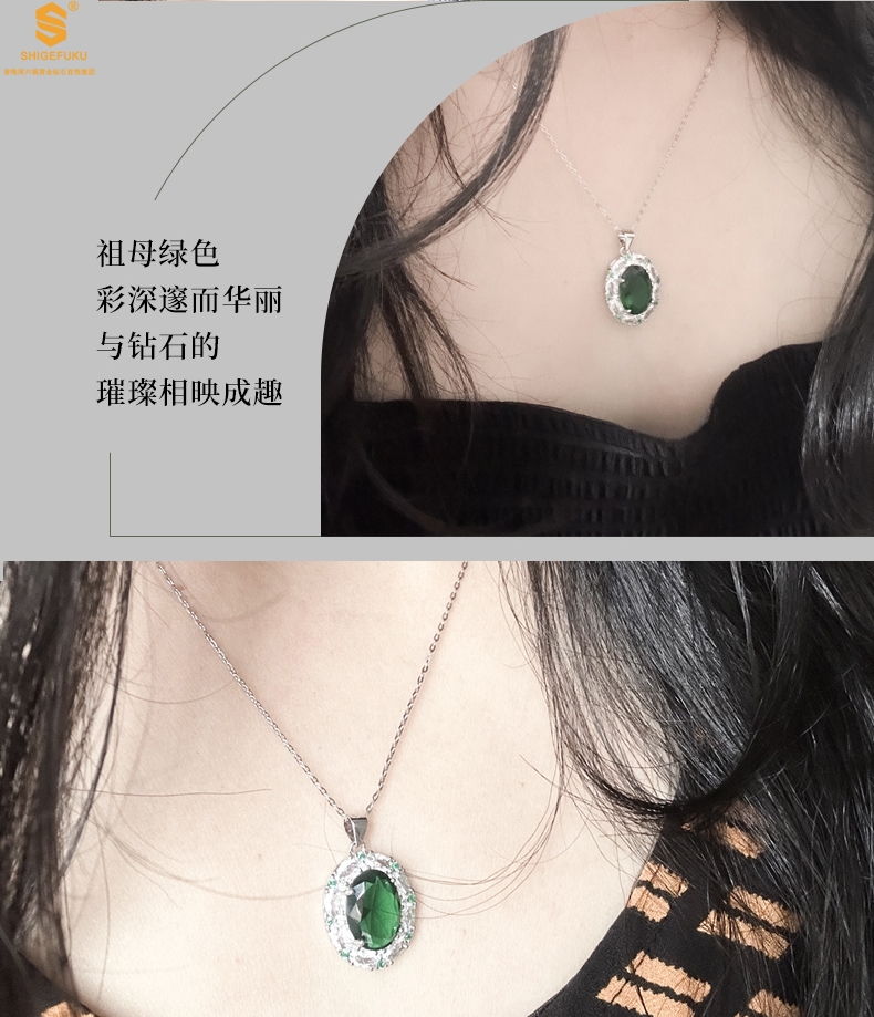 【品名】K铂金CNC彩宝钻石惊艳时光祖母绿吊坠