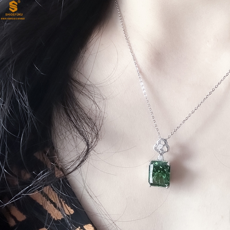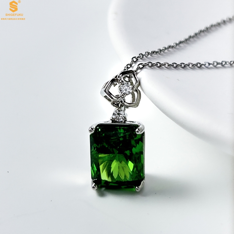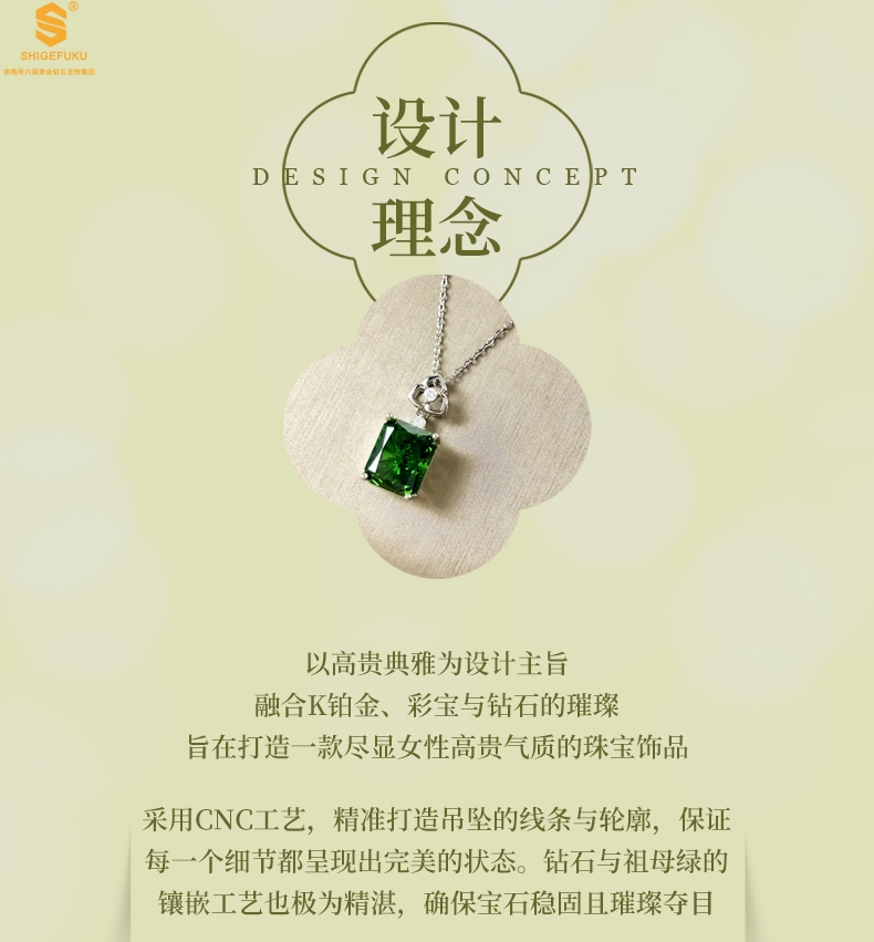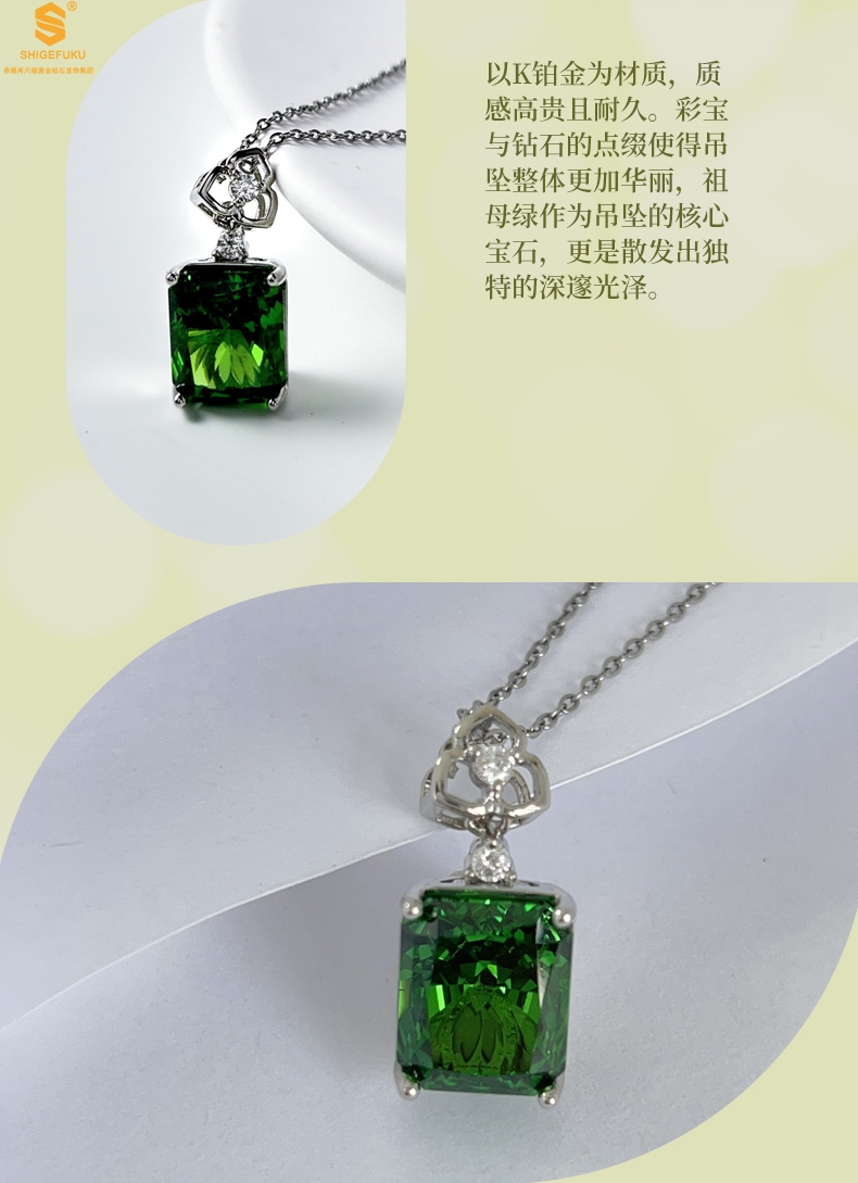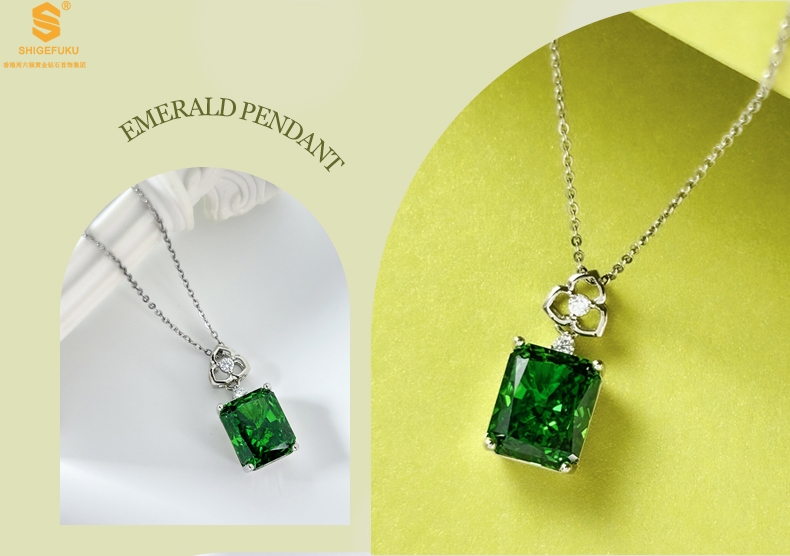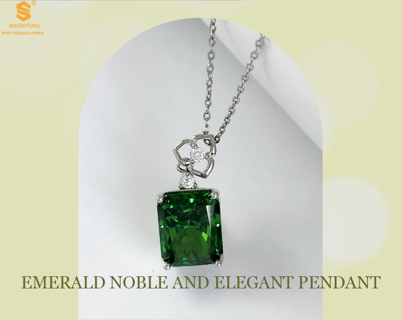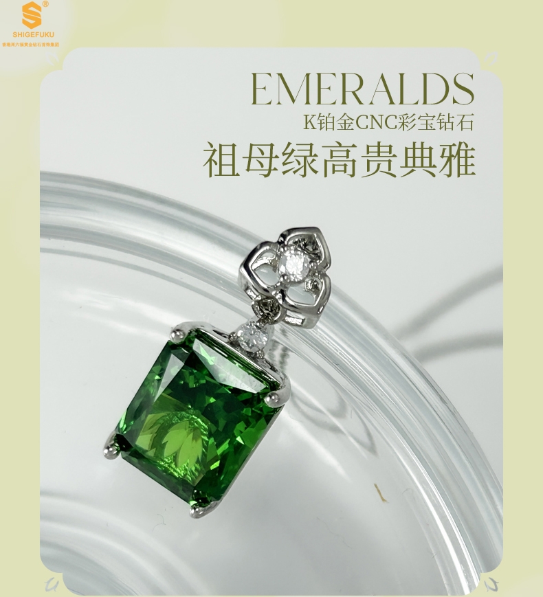 【品名】K铂金CNC彩宝钻石祖母绿高贵典雅吊坠