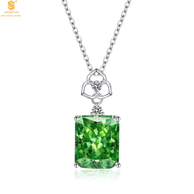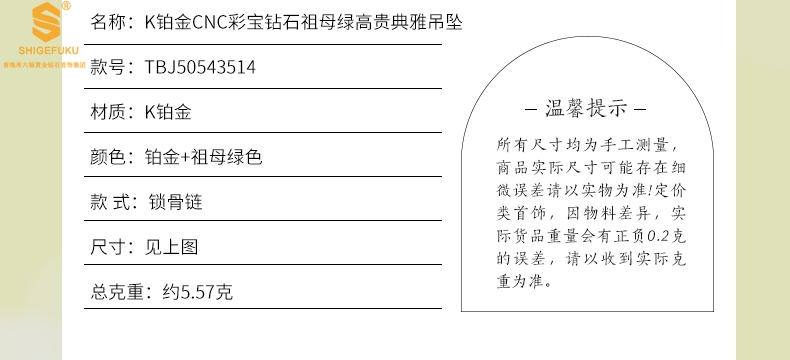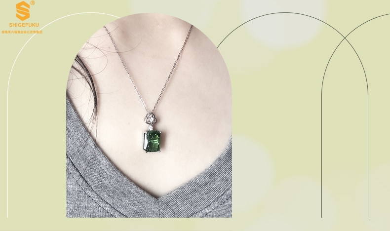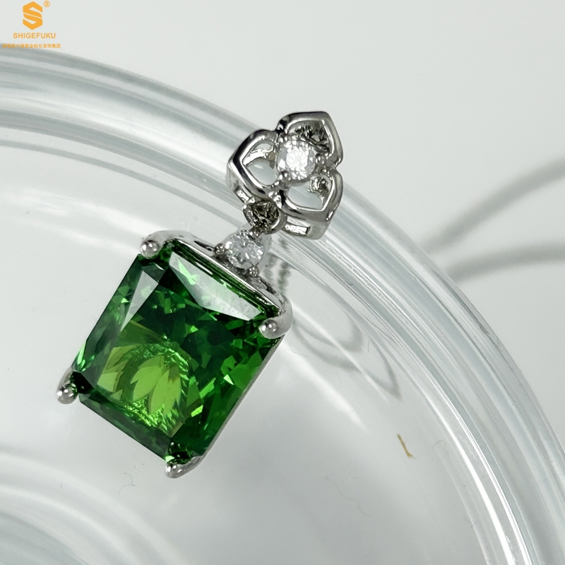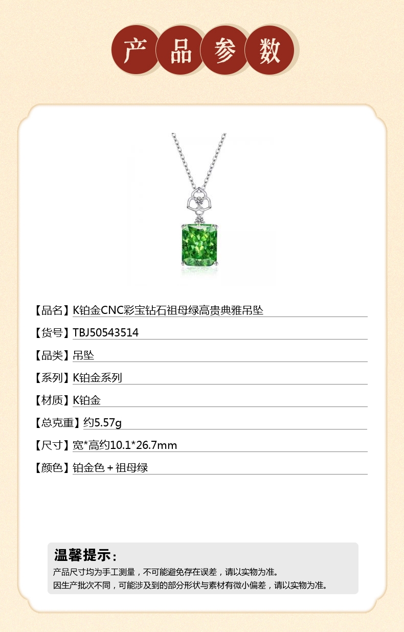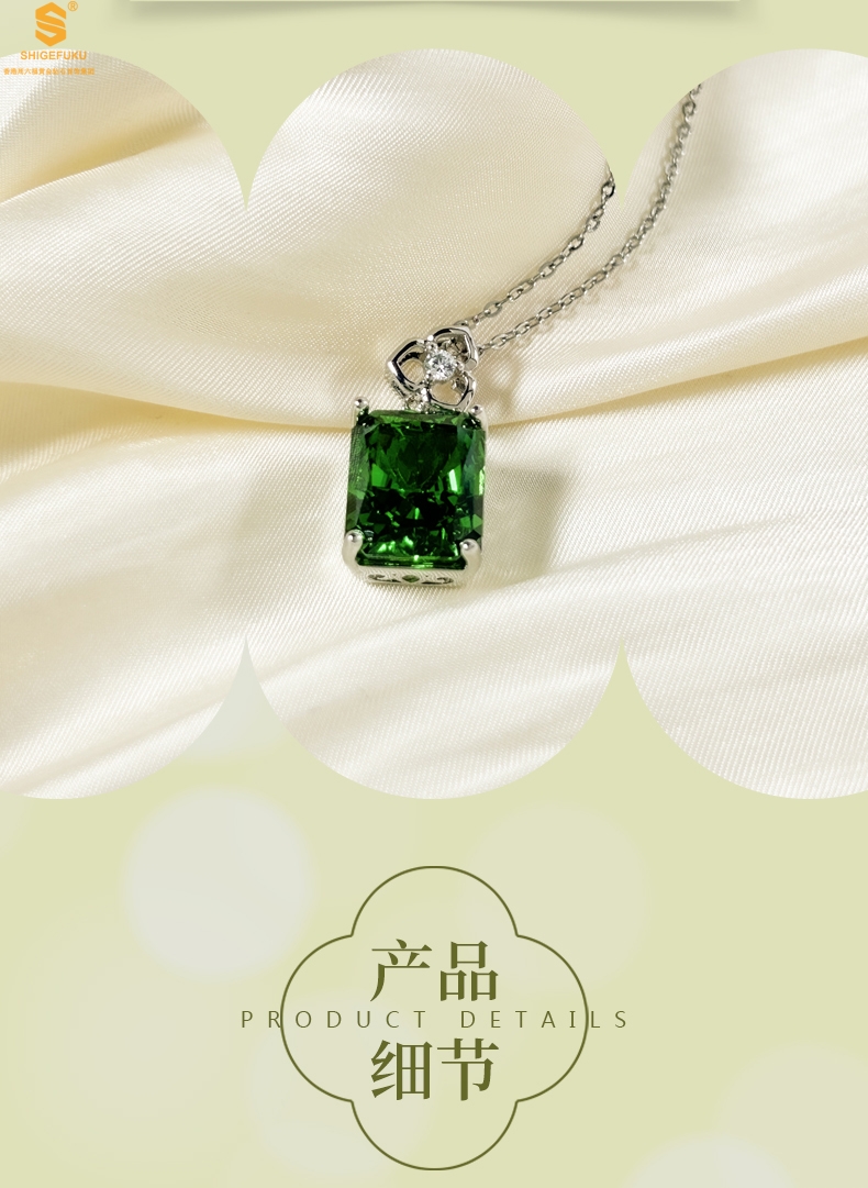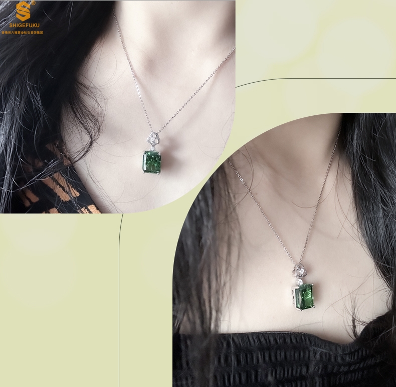 【品名】K铂金CNC彩宝钻石祖母绿高贵典雅吊坠