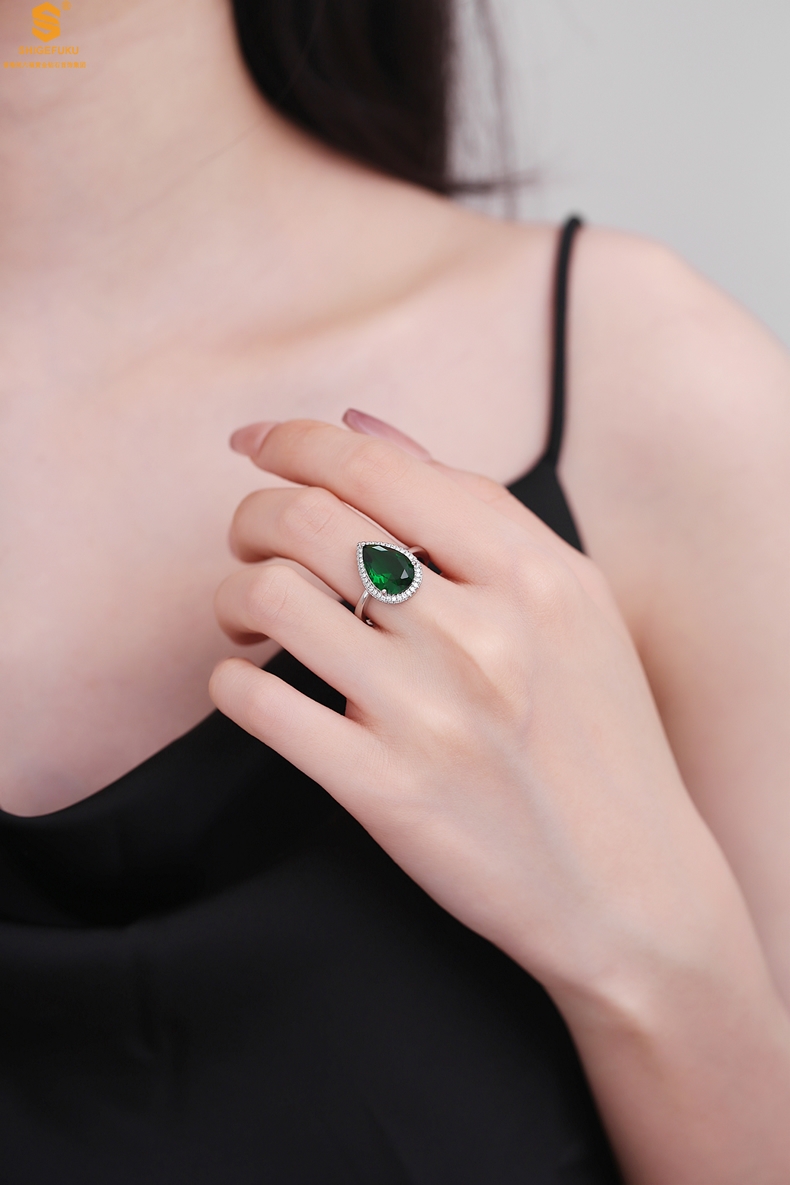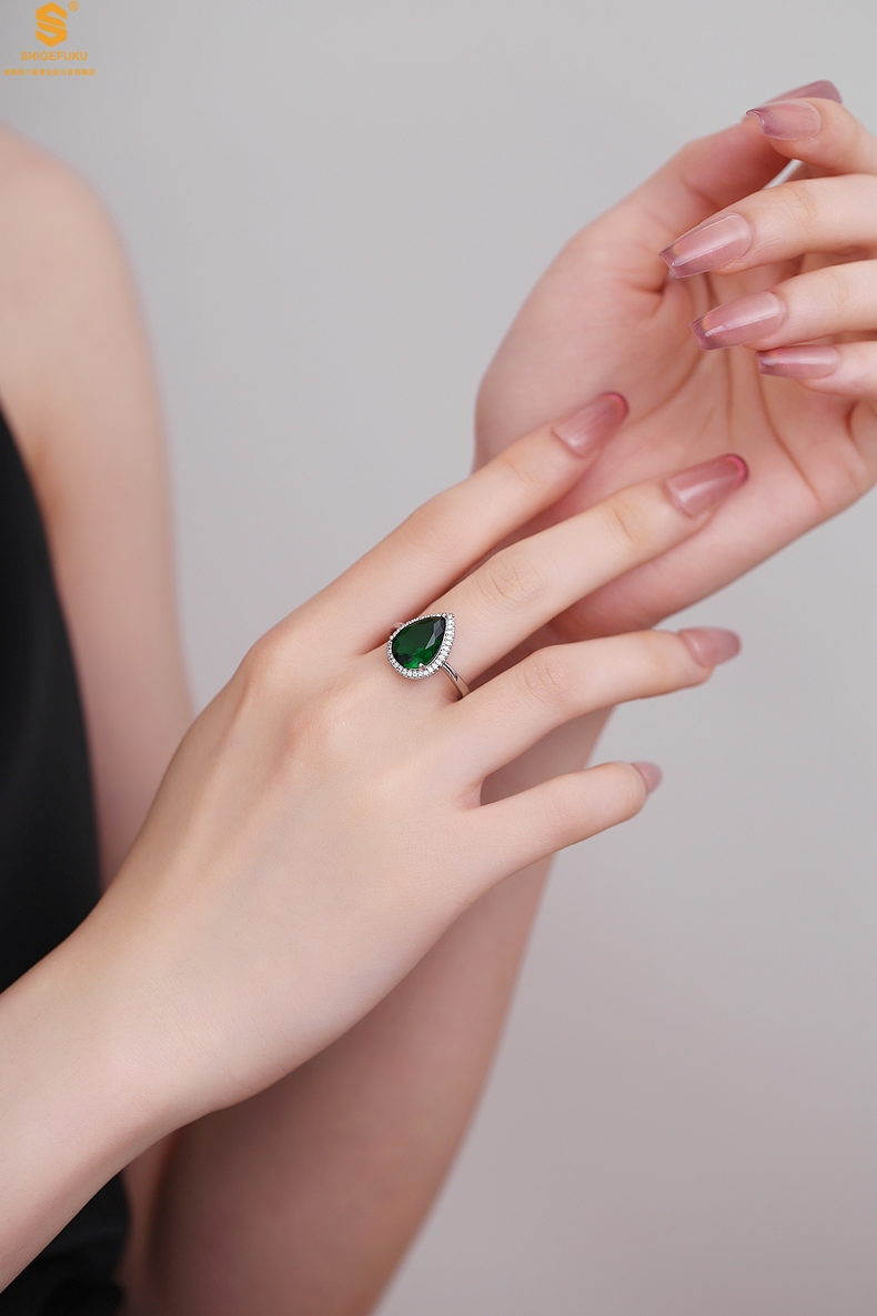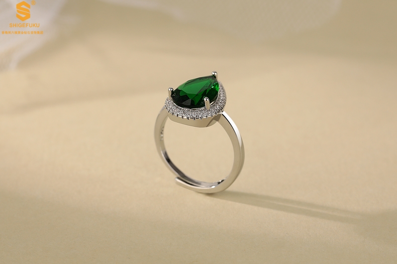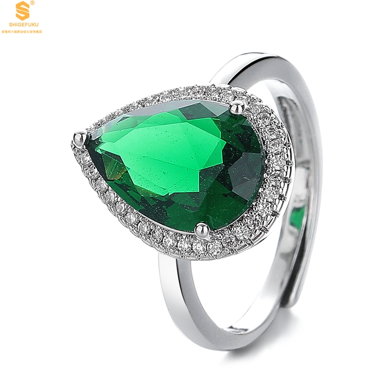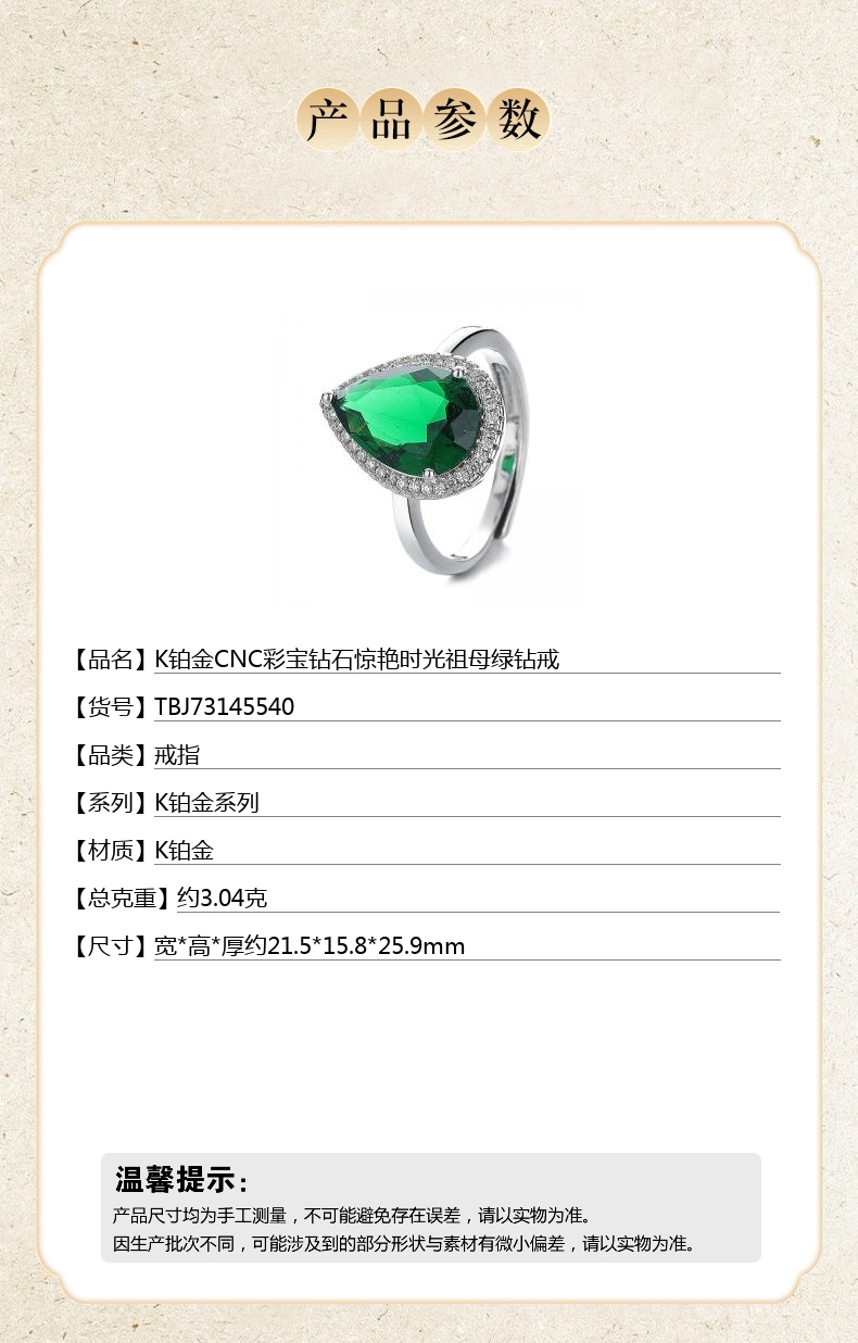 【品名】K铂金CNC彩宝钻石惊艳时光祖母绿钻戒