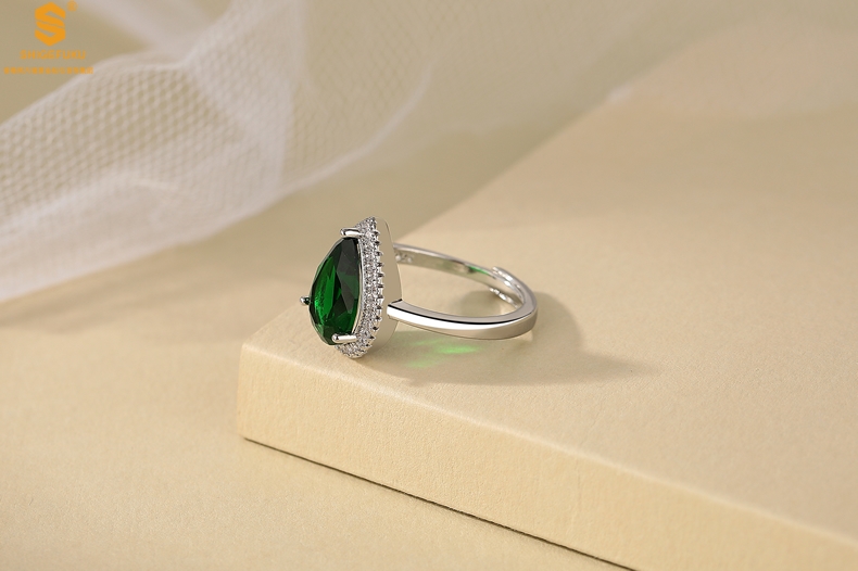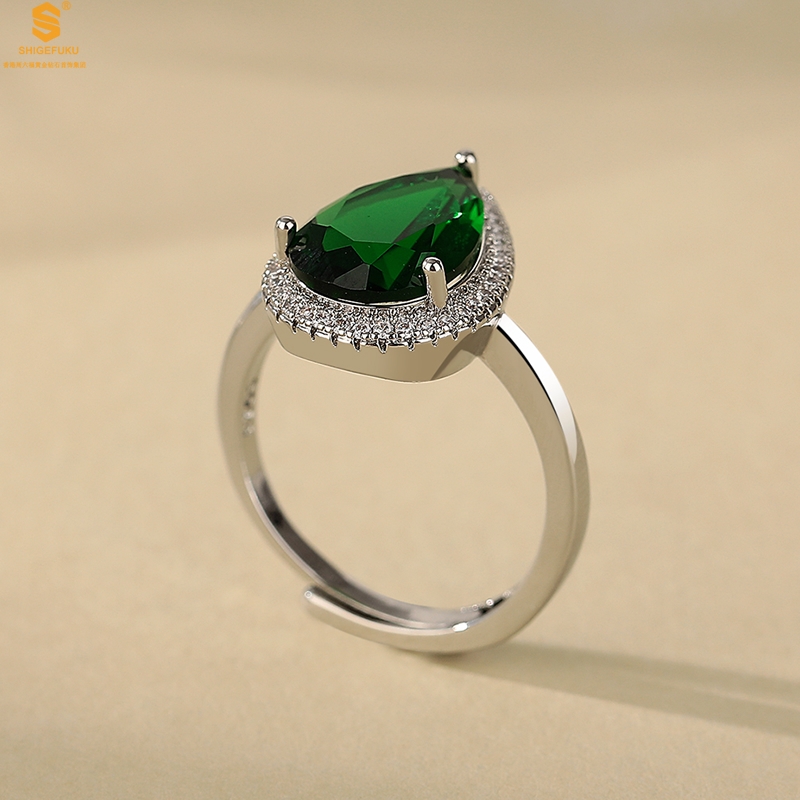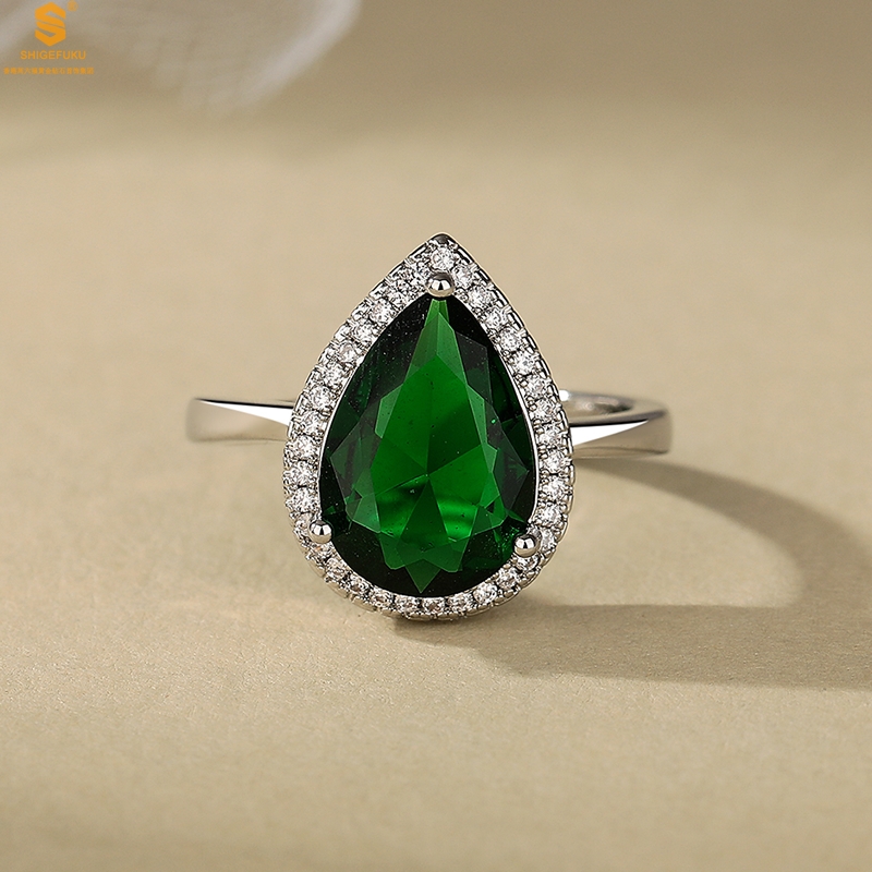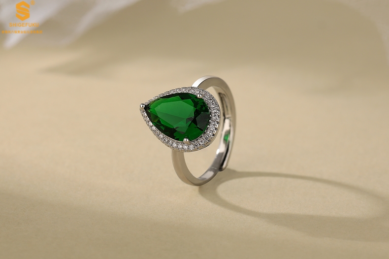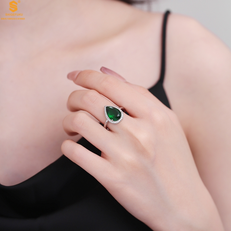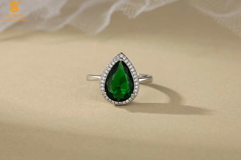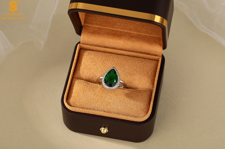 【品名】K铂金CNC彩宝钻石惊艳时光祖母绿钻戒