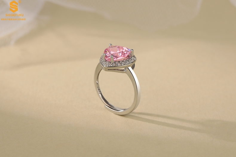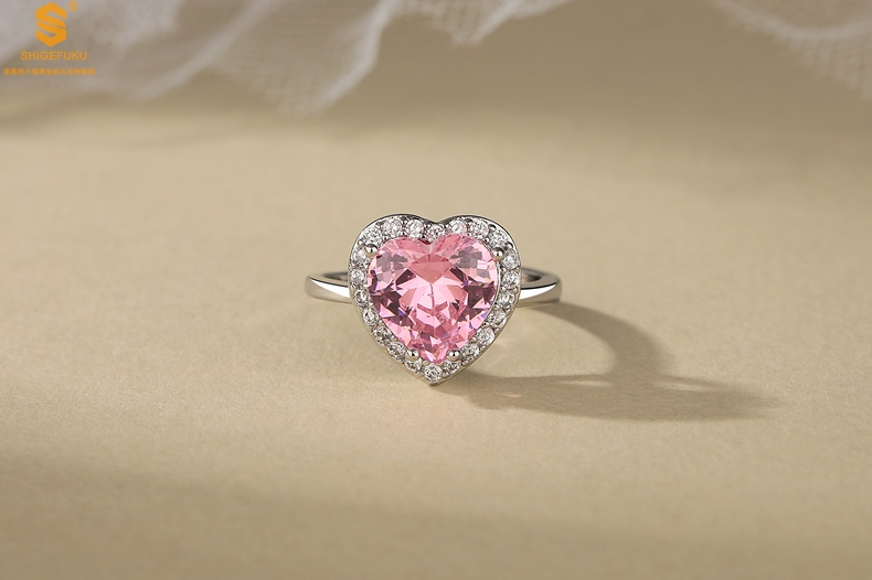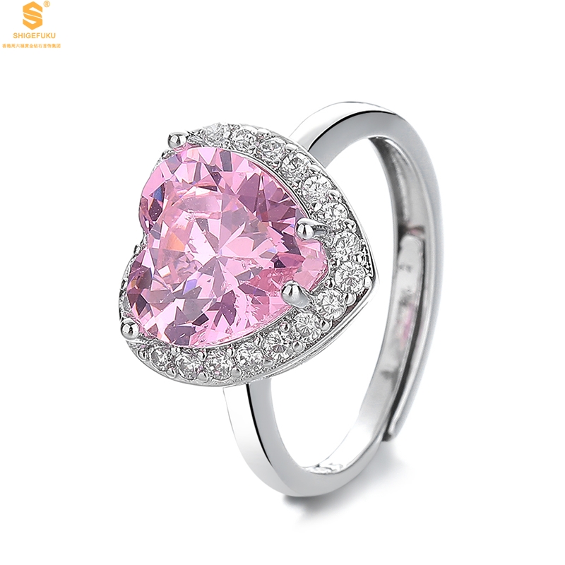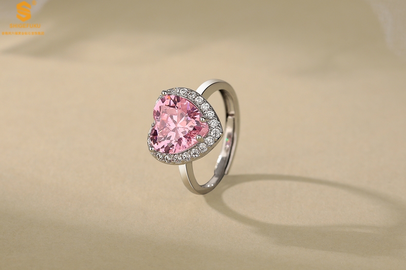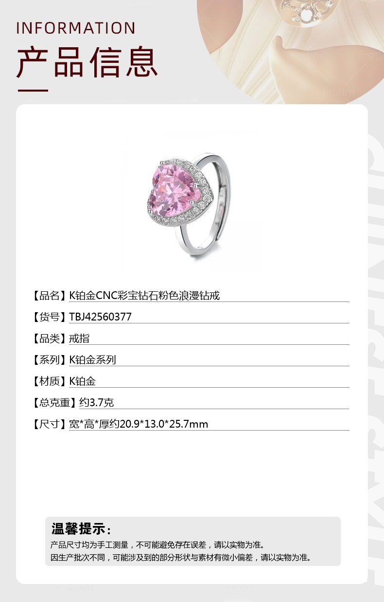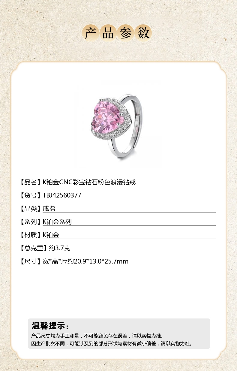 【品名】K铂金CNC彩宝钻石粉色浪漫钻戒