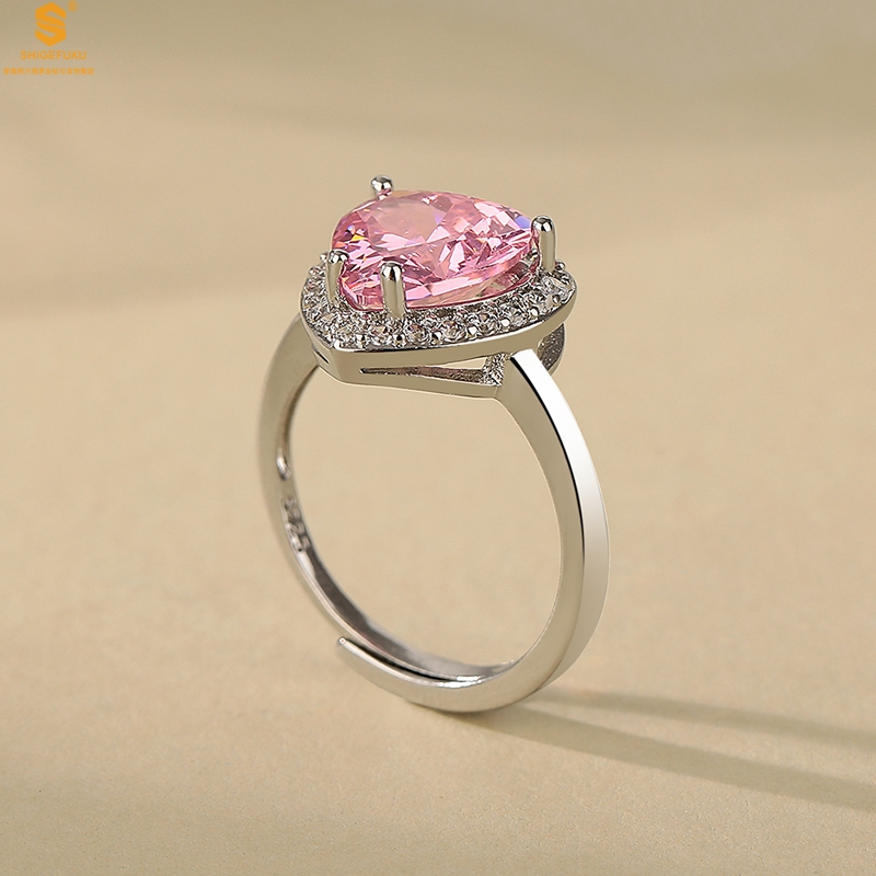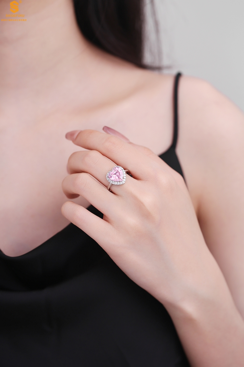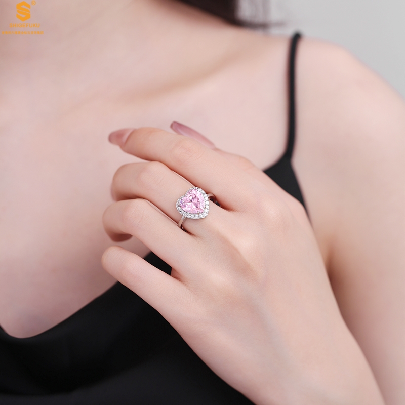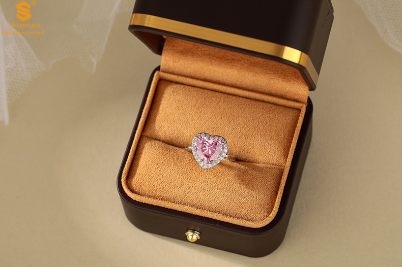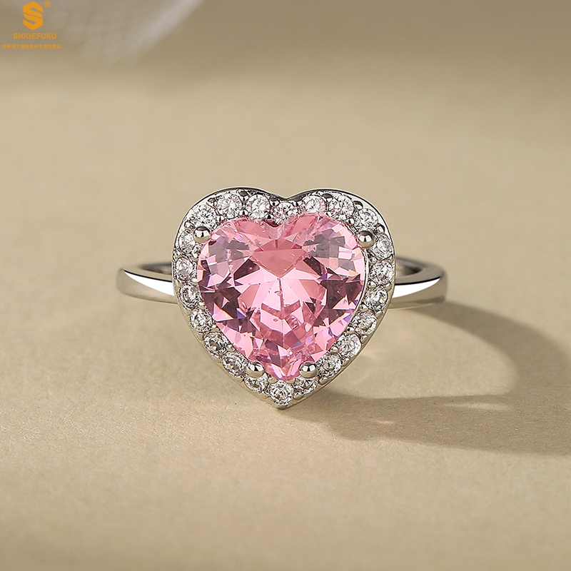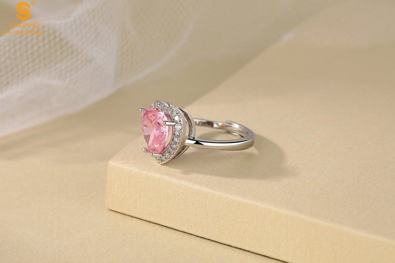 【品名】K铂金CNC彩宝钻石粉色浪漫钻戒
