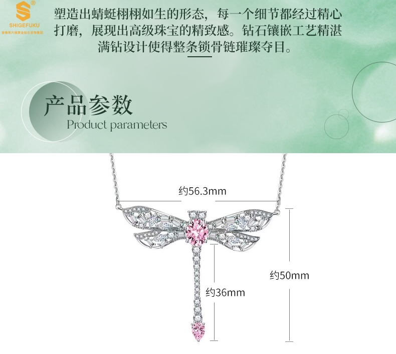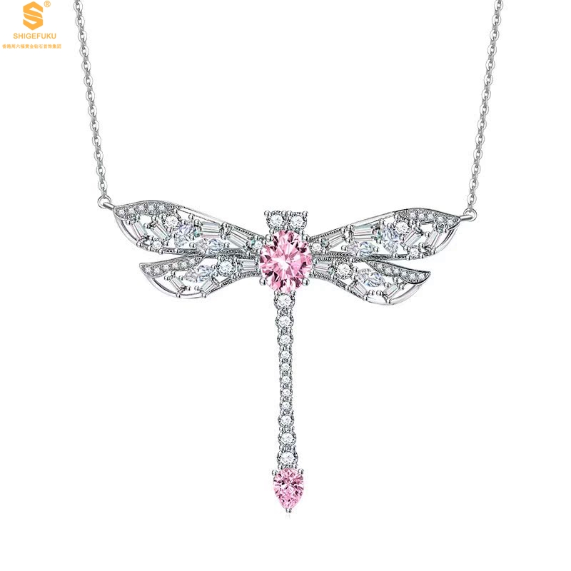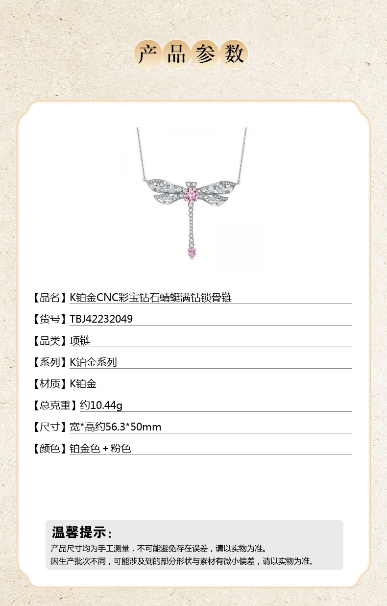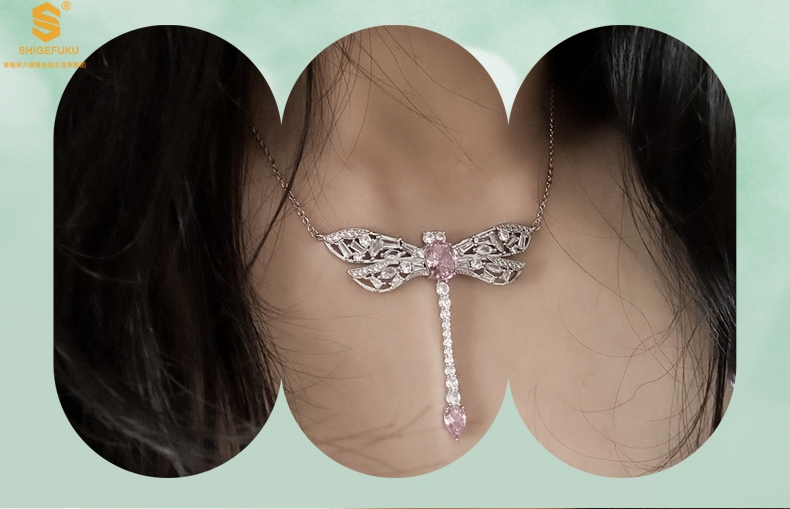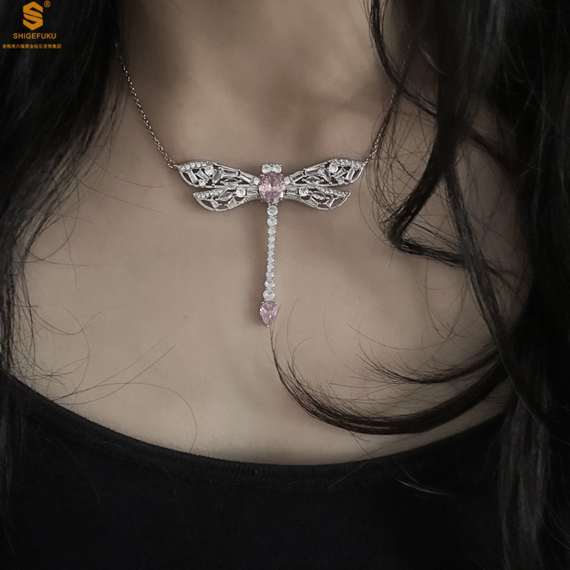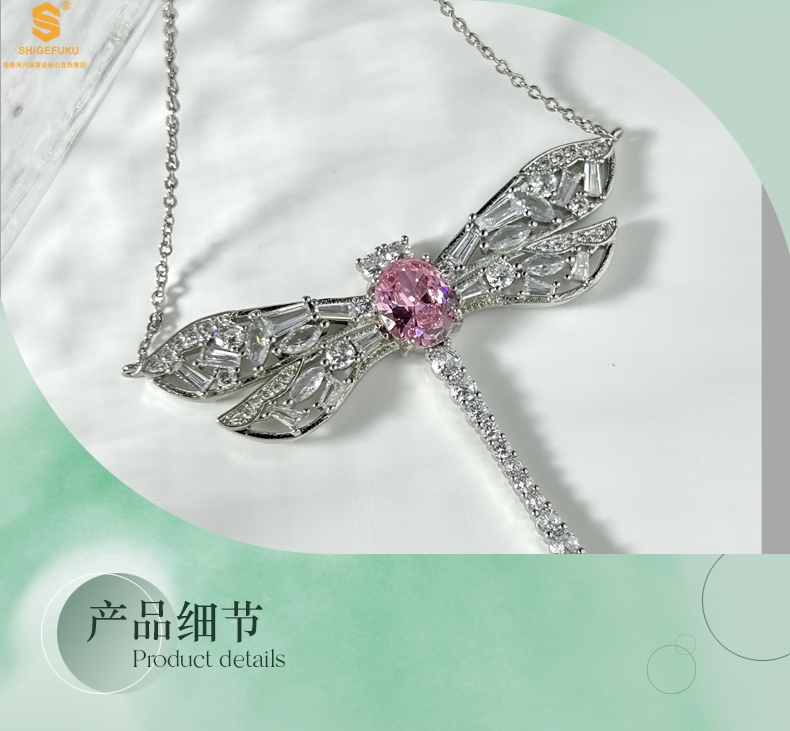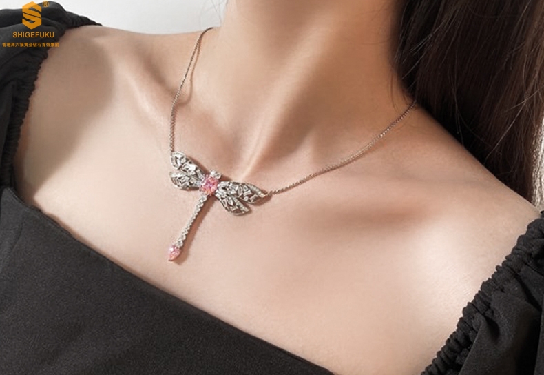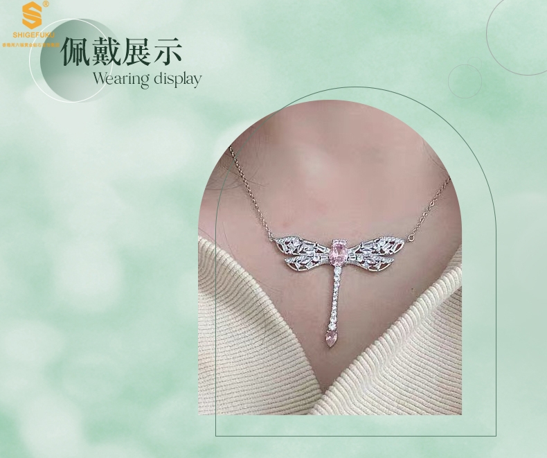【品名】K铂金CNC彩宝钻石蜻蜓满钻锁骨链