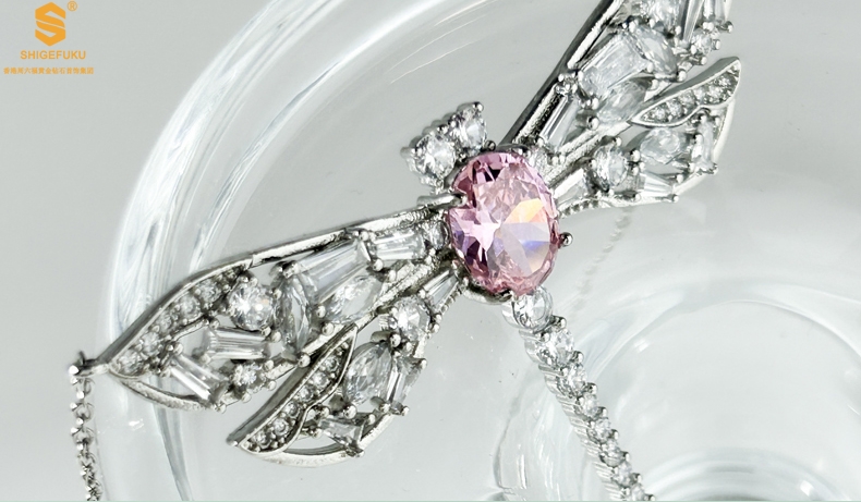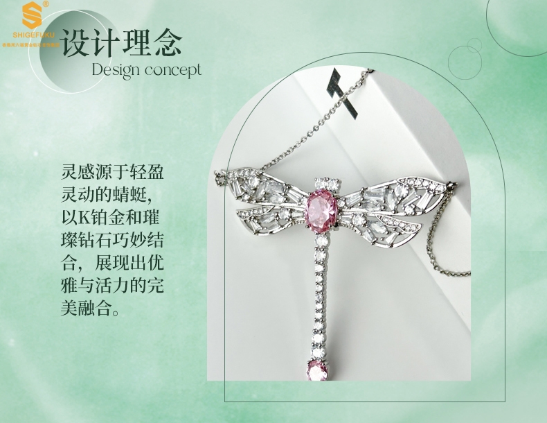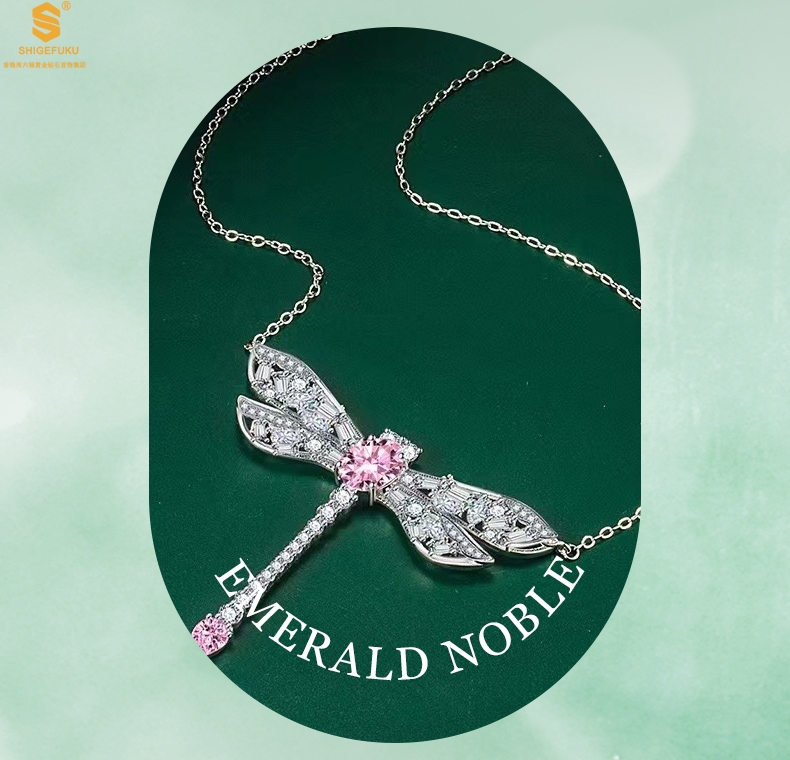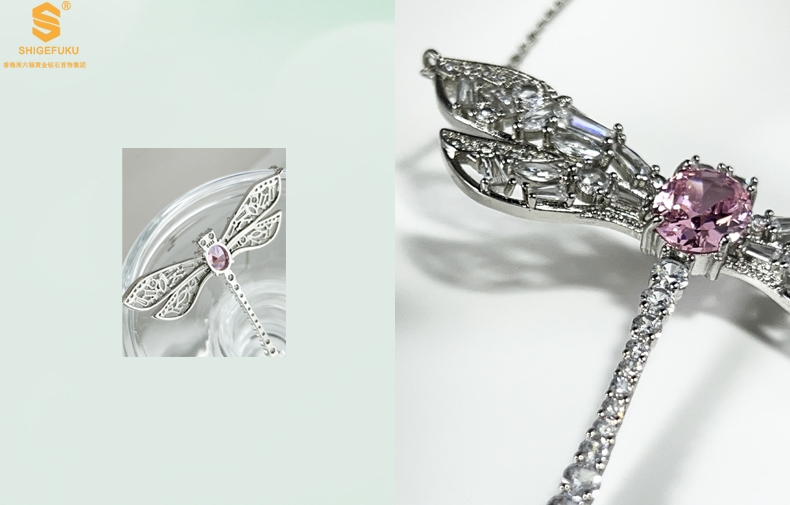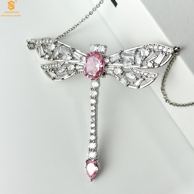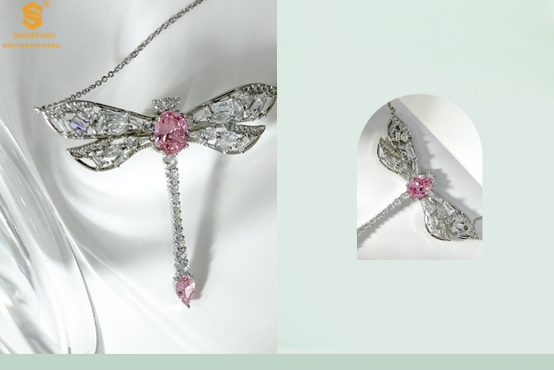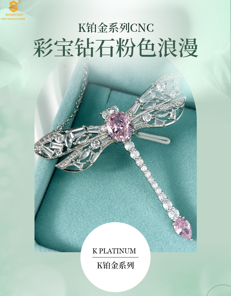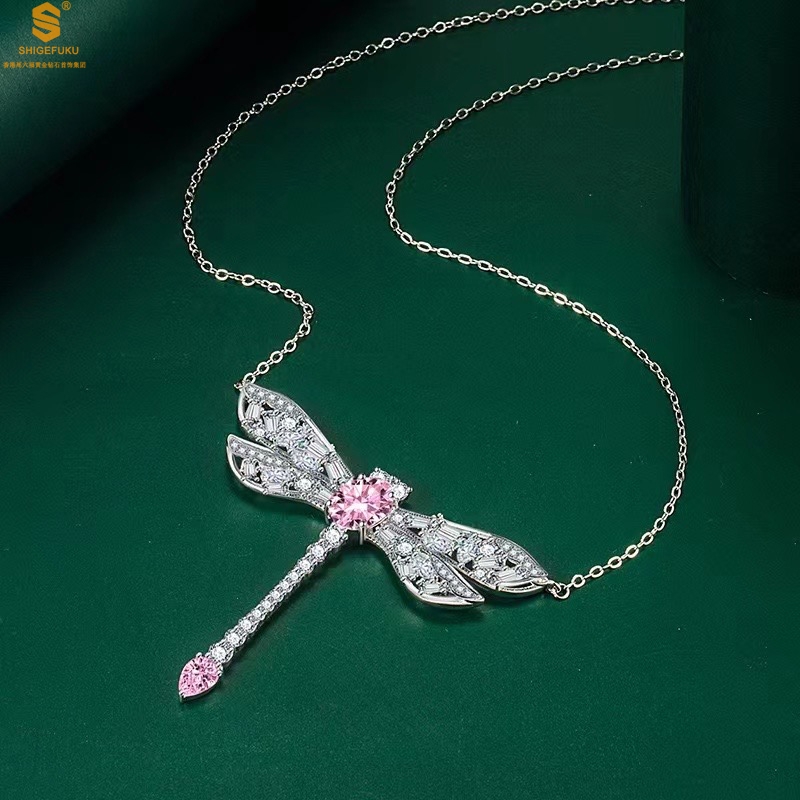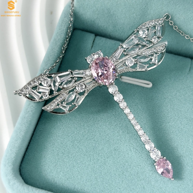 【品名】K铂金CNC彩宝钻石蜻蜓满钻锁骨链